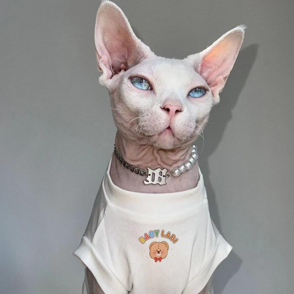 2025 새로운 고양이 옷 여름 얇은 얼음 실크 인쇄 귀여운 탄성 작은 잘 생긴 털이없는 고양이스토어 가기