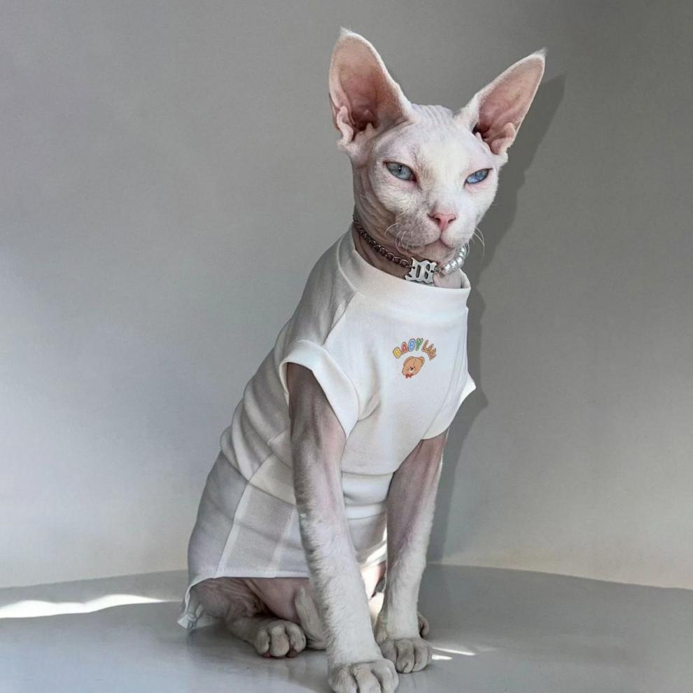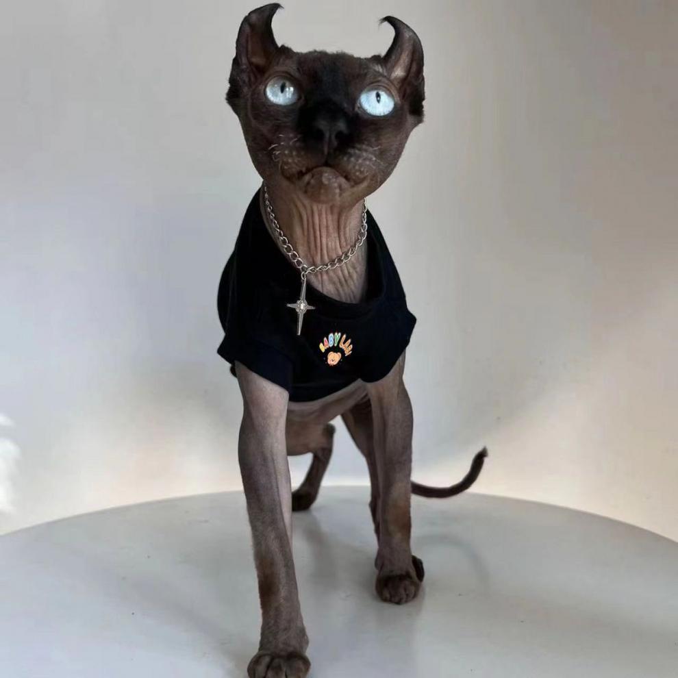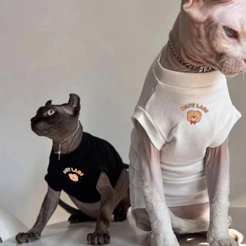 2025 새로운 고양이 옷 여름 얇은 얼음 실크 인쇄 귀여운 탄성 작은 잘 생긴 털이없는 고양이