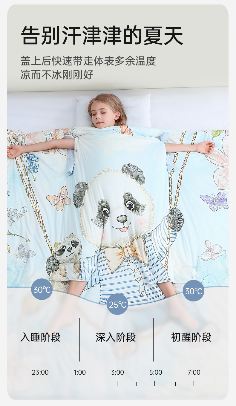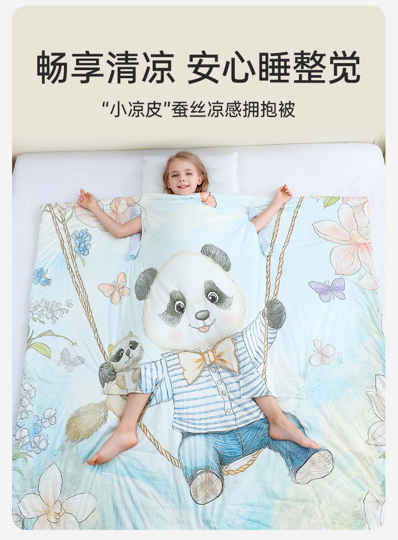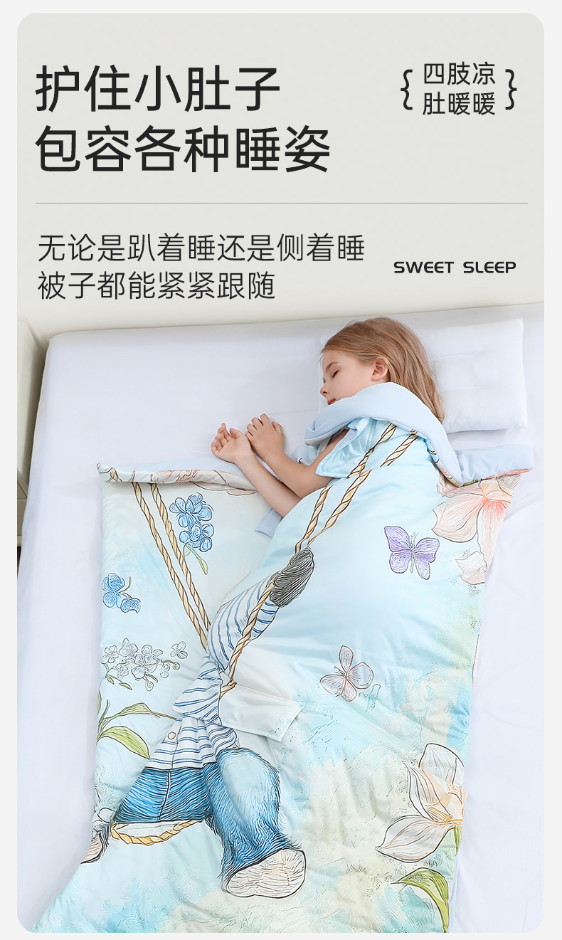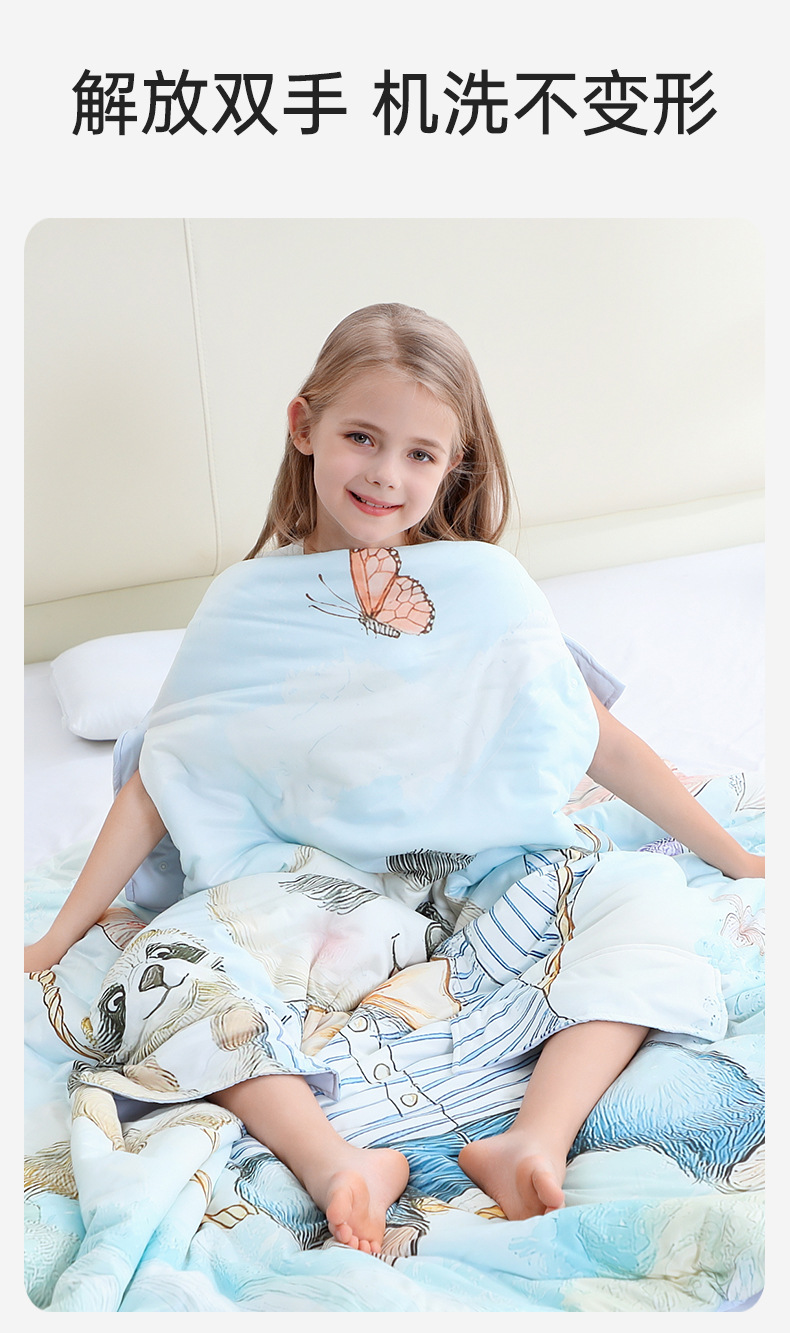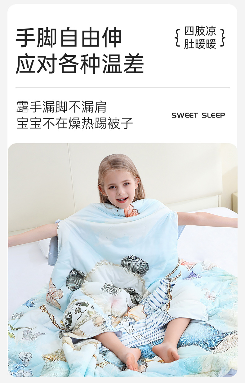 ® 카이플란 어린이용 얇은 에어컨 이불 여름용 시원한 이불 아기 발차기 방지 이불 포옹 이불 실크 수면 가방 A급