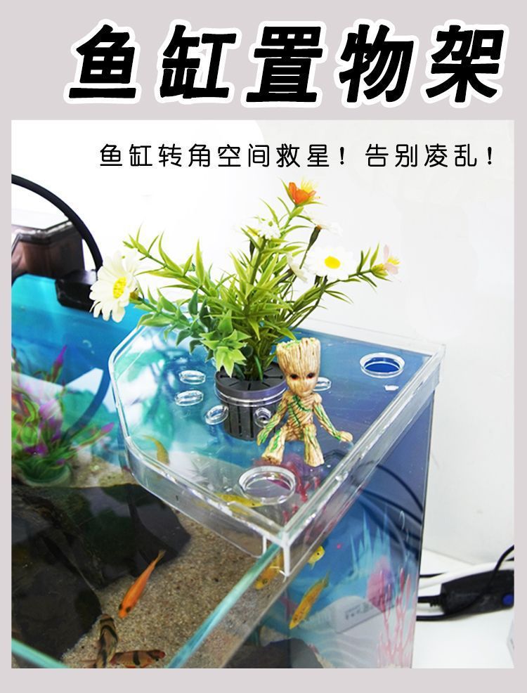 낚시 탱크 코너 수납 선반, 구멍이 없는 어류 사료 수납 선반, 낚시 탱크 상단 조경 브래킷, 수경 녹색 식물 트레이스토어 가기