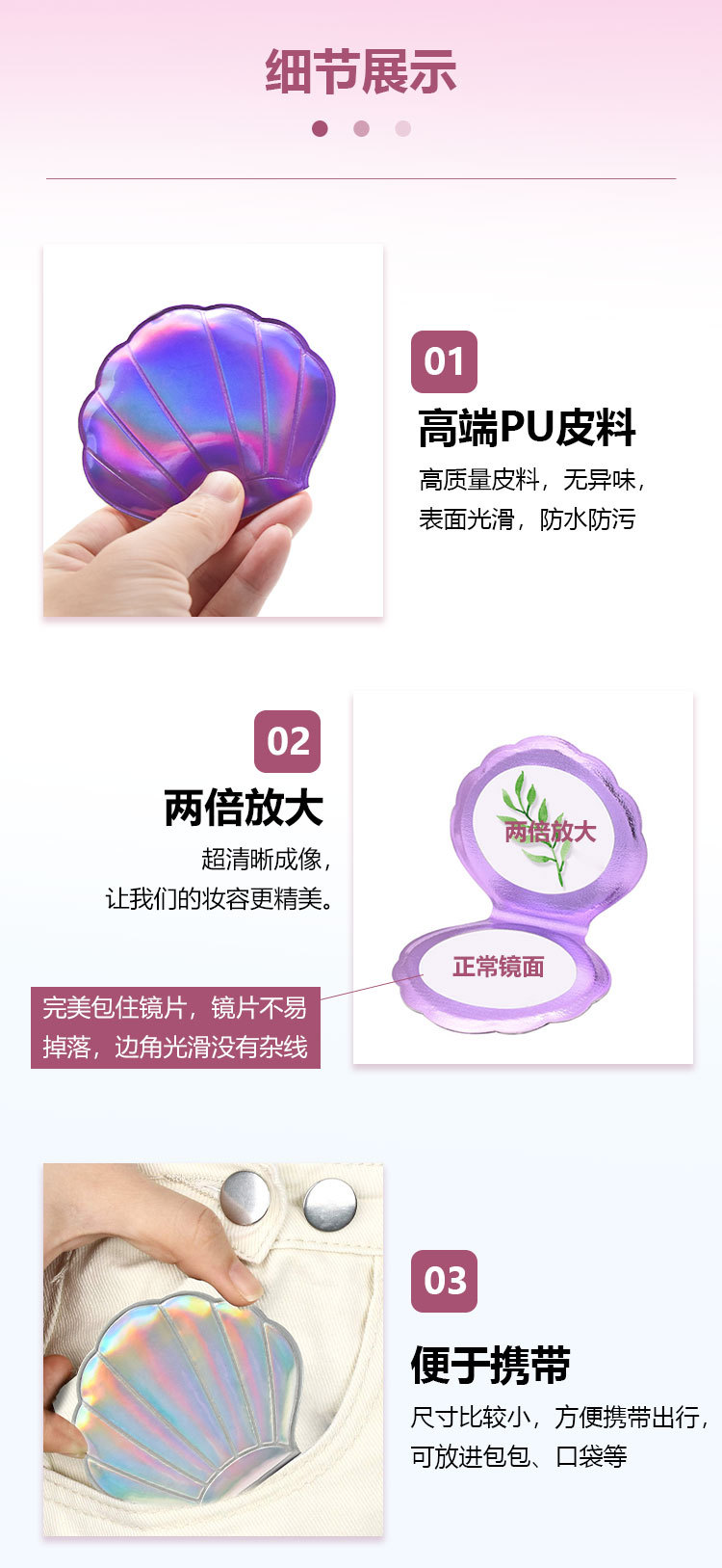 小镜子新款定制便携贝壳化妆镜折叠高颜值学生随身可爱现货迷你镜
