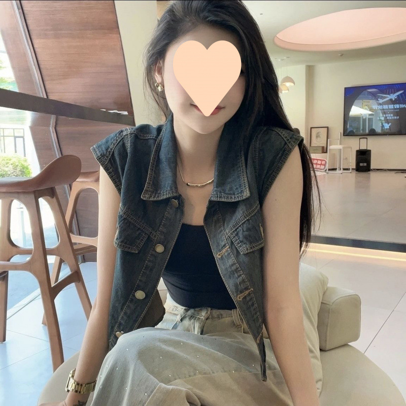 여름 레트로 카디건, 레트로 쇼트 데님 카디건, 고급 데님 조끼, 홍콩 스타일 여성 조끼, 새로운 스타일스토어 가기