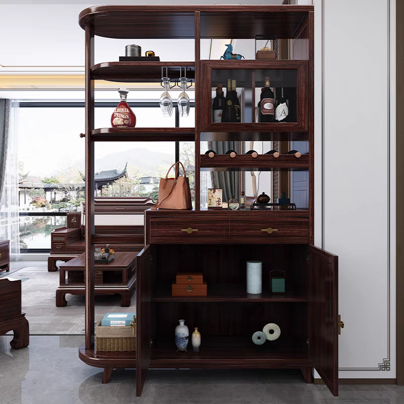 거실 파티션 입구 캐비닛 새로운 중국 스타일 검은 금 나무 다기능 바닥 스탠딩 신발 캐비닛 단단한 나무 스크린 와인 캐비닛 보관 캐비닛