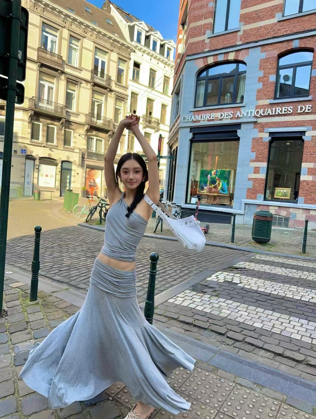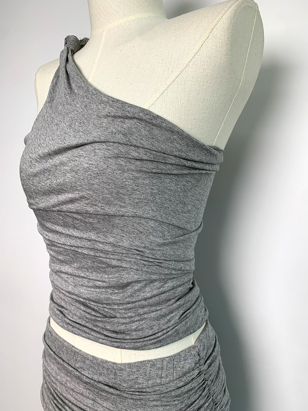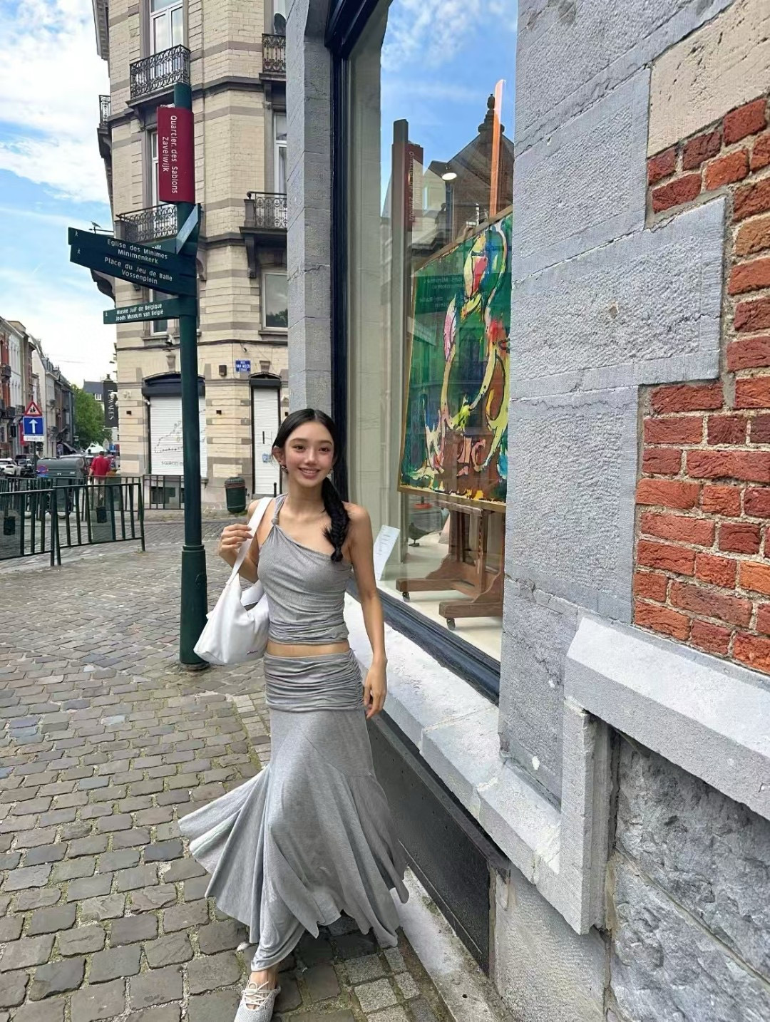 [GIMAGUAS 동일 스타일] 그레이 스페인 소녀 모달 오프숄더 조끼 플리츠 스커트 슈트스토어 가기
