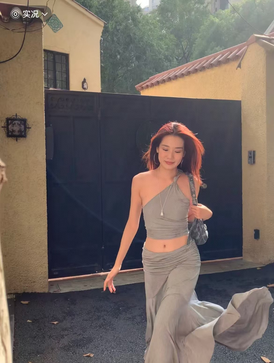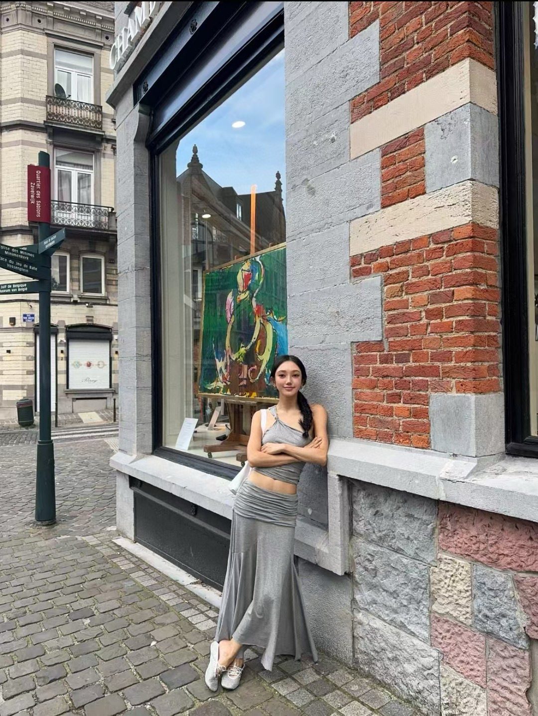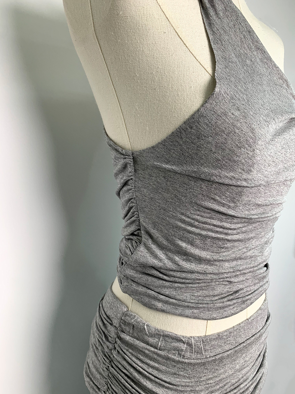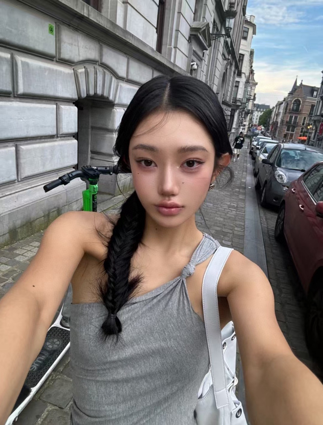 [GIMAGUAS 동일 스타일] 그레이 스페인 소녀 모달 오프숄더 조끼 플리츠 스커트 슈트스토어 가기