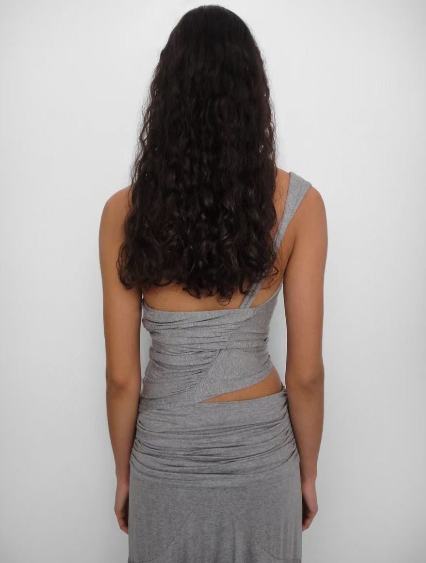 [GIMAGUAS 동일 스타일] 그레이 스페인 소녀 모달 오프숄더 조끼 플리츠 스커트 슈트