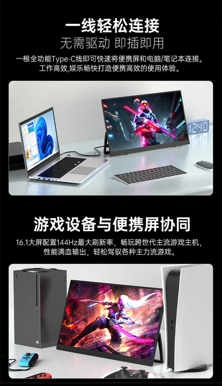 15.6inch 스탠드 모델 휴대용 모니터 스위치/PS5 노트북 외부 보조 장치에 직접 연결스토어 가기