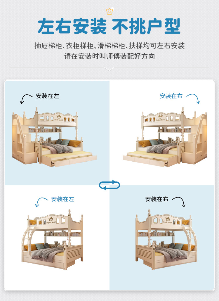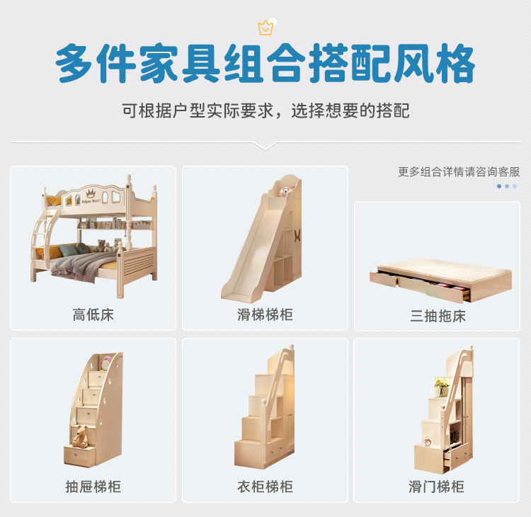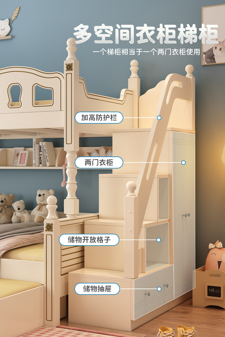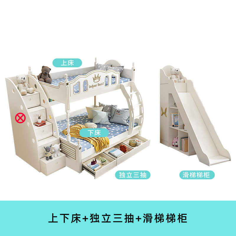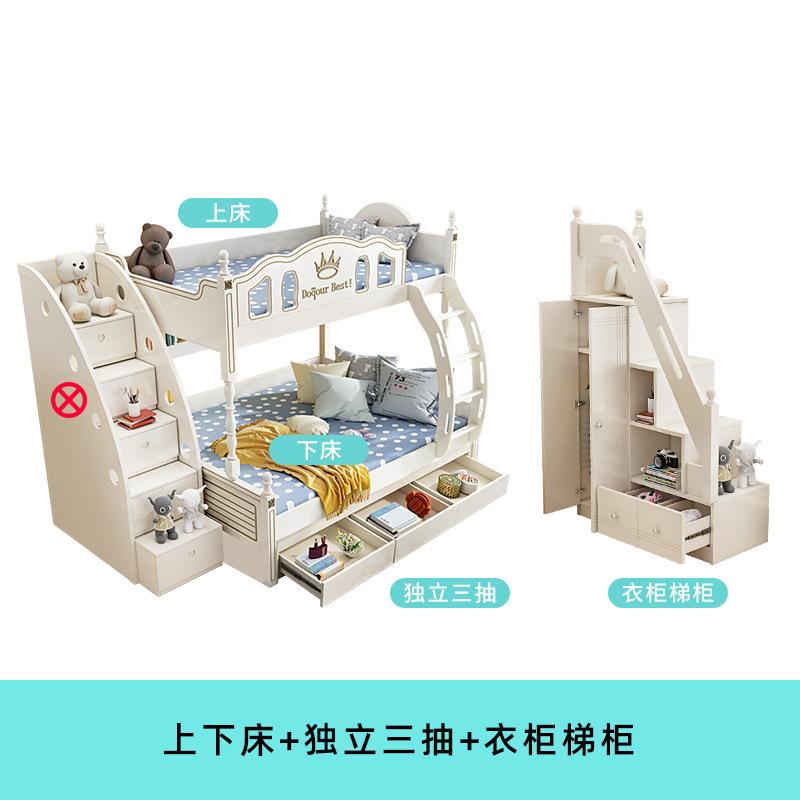 • 이층침대 + 독립형 서랍 3개 + 슬라이딩 사다리 캐비닛