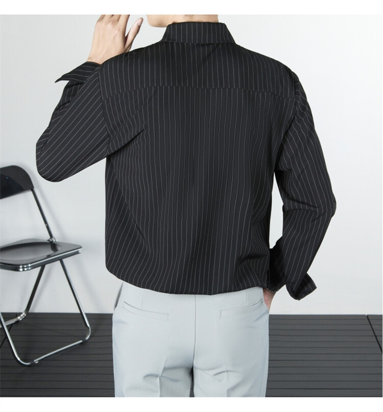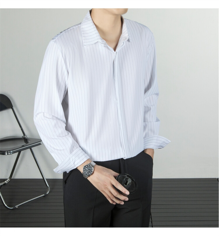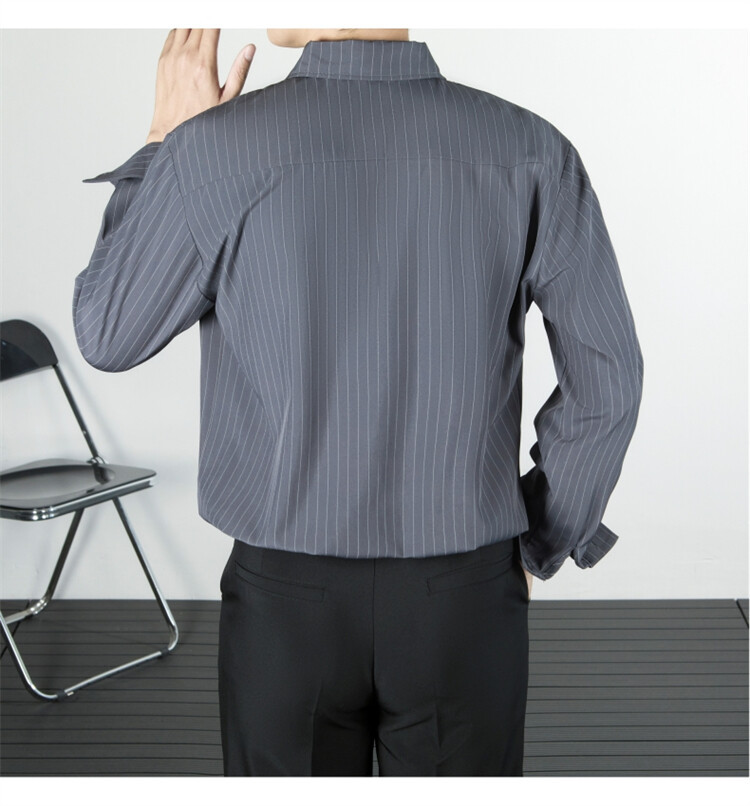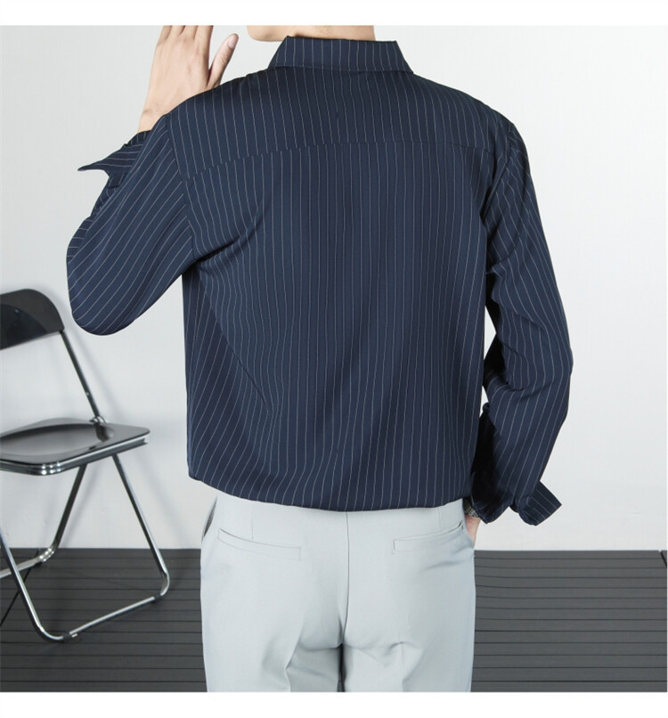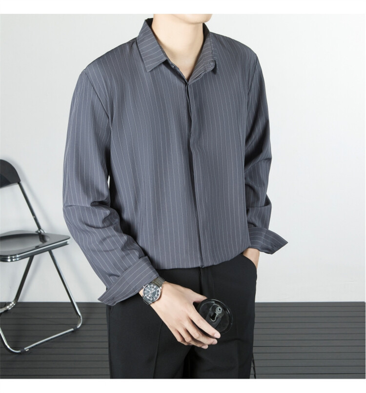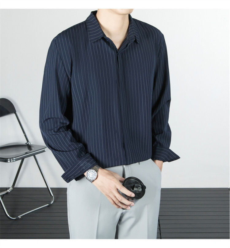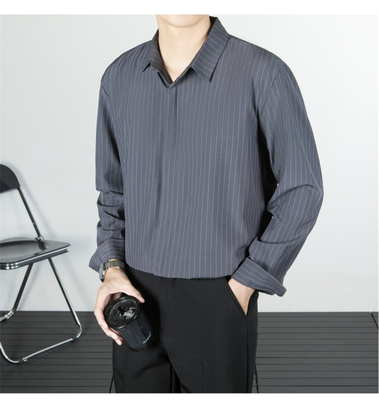 파인 스트라이프 셔츠 턴 다운 칼라 루즈 봄, 가을 긴 소매 남성 캐주얼 탑 2025 신규스토어 가기