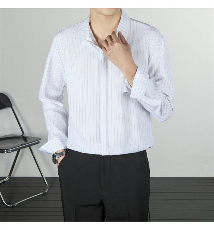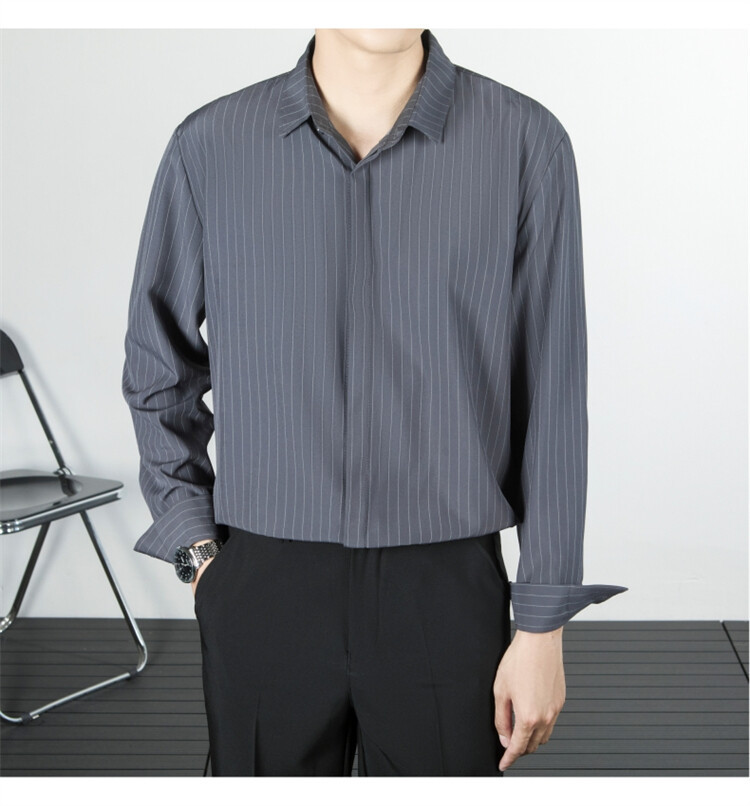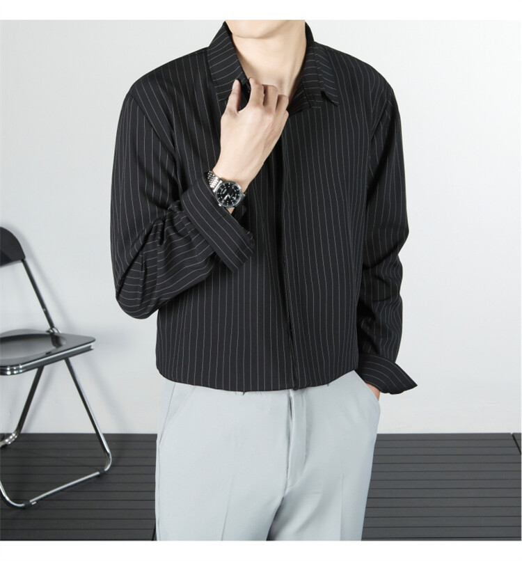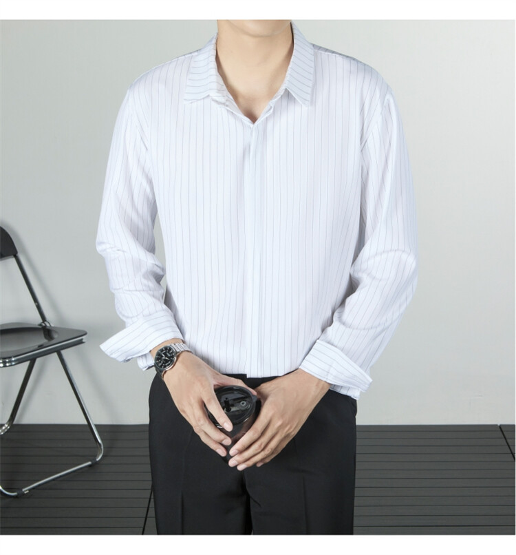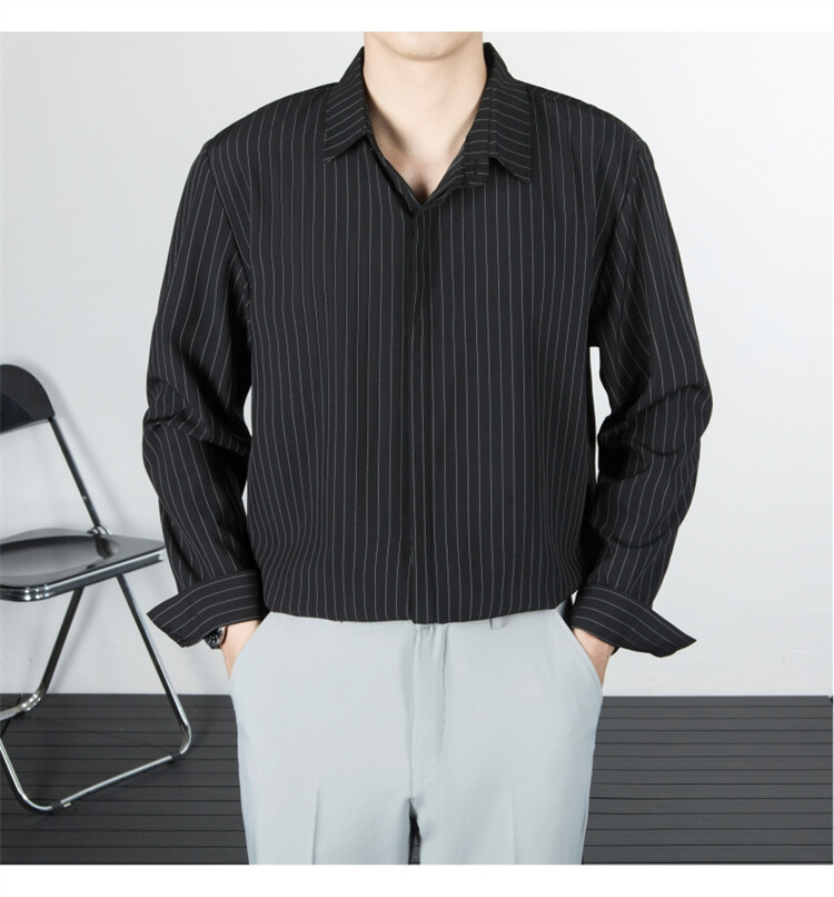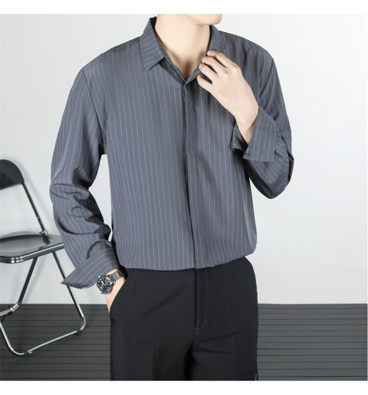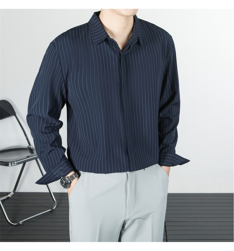 파인 스트라이프 셔츠 턴 다운 칼라 루즈 봄, 가을 긴 소매 남성 캐주얼 탑 2025 신규스토어 가기