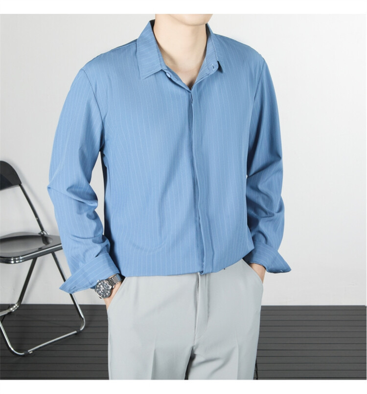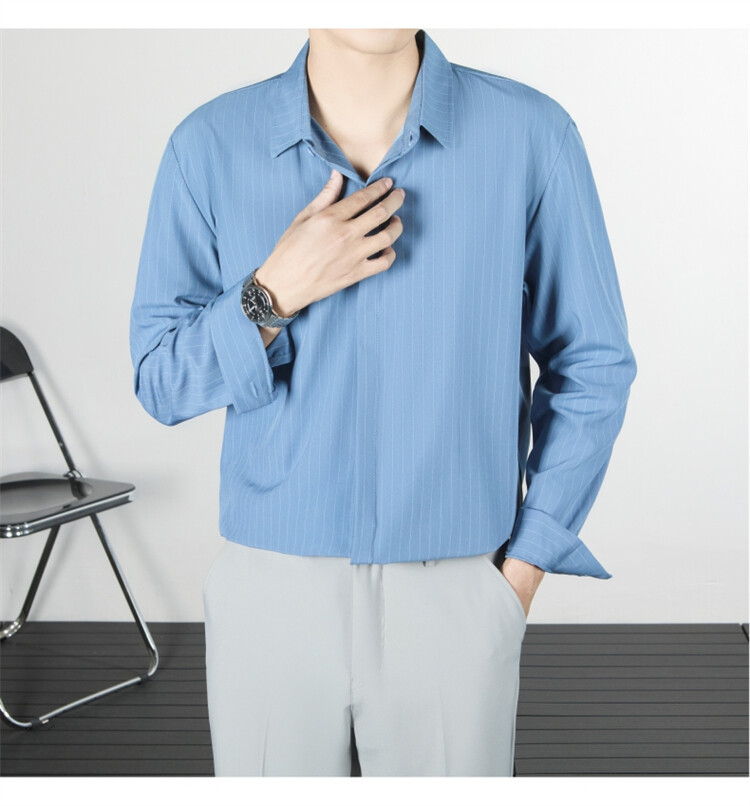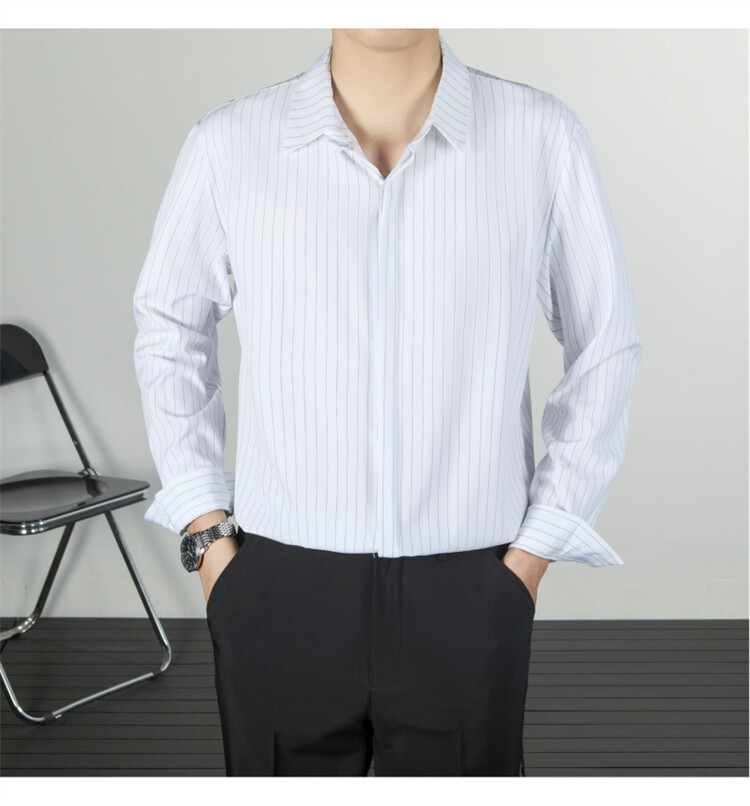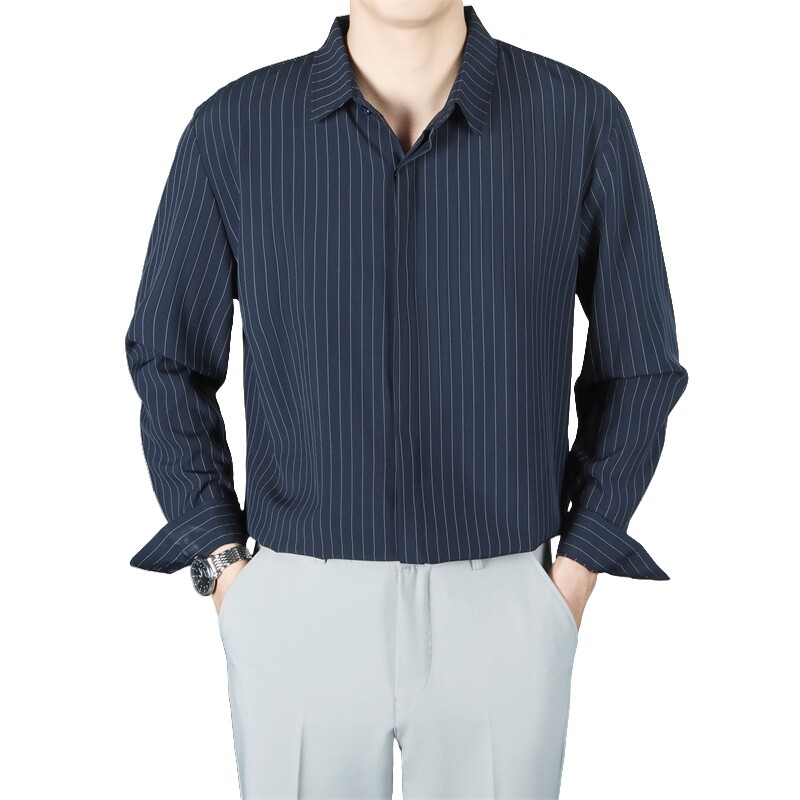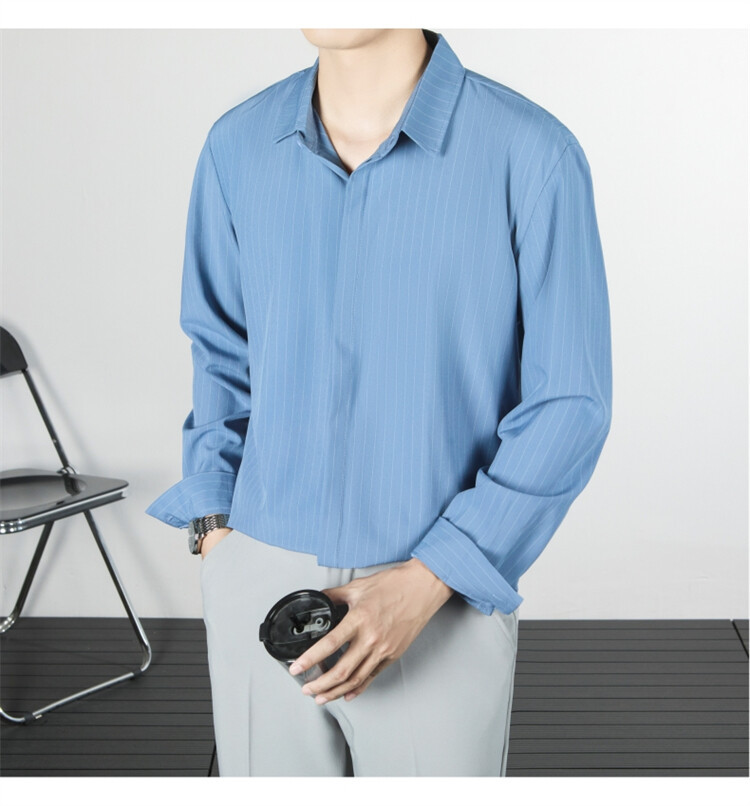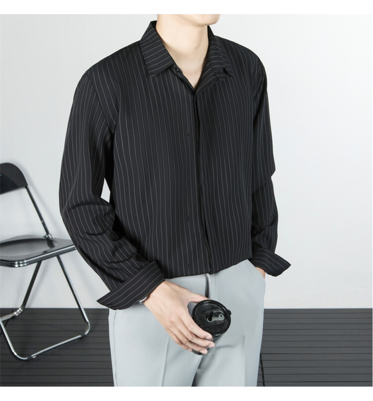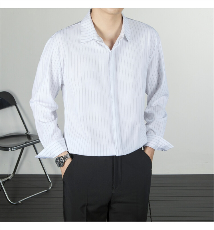파인 스트라이프 셔츠 턴 다운 칼라 루즈 봄, 가을 긴 소매 남성 캐주얼 탑 2025 신규스토어 가기
