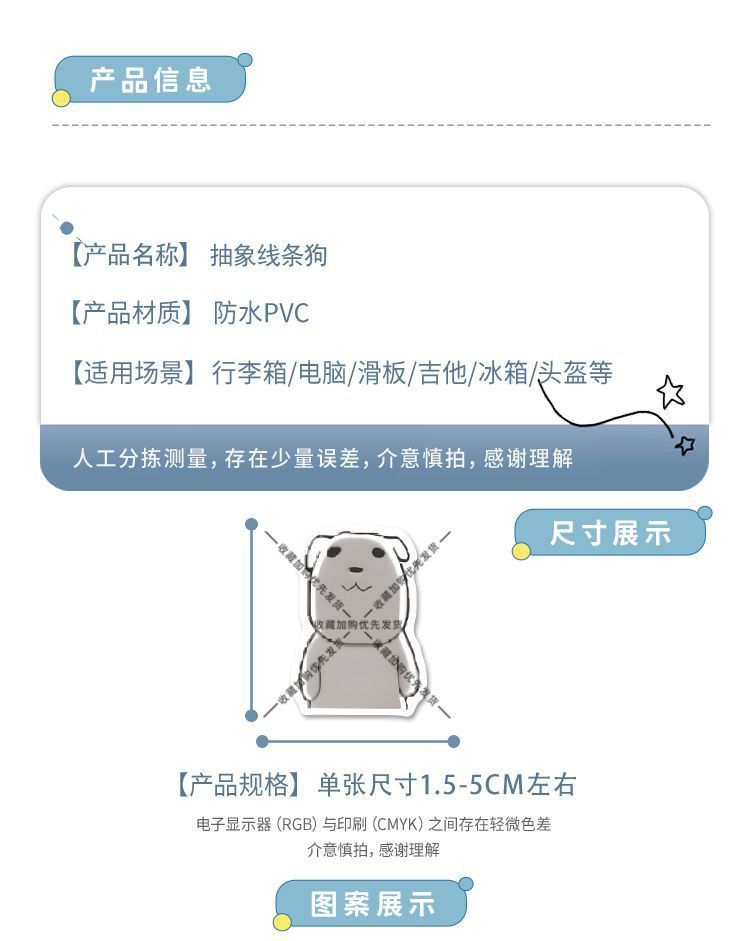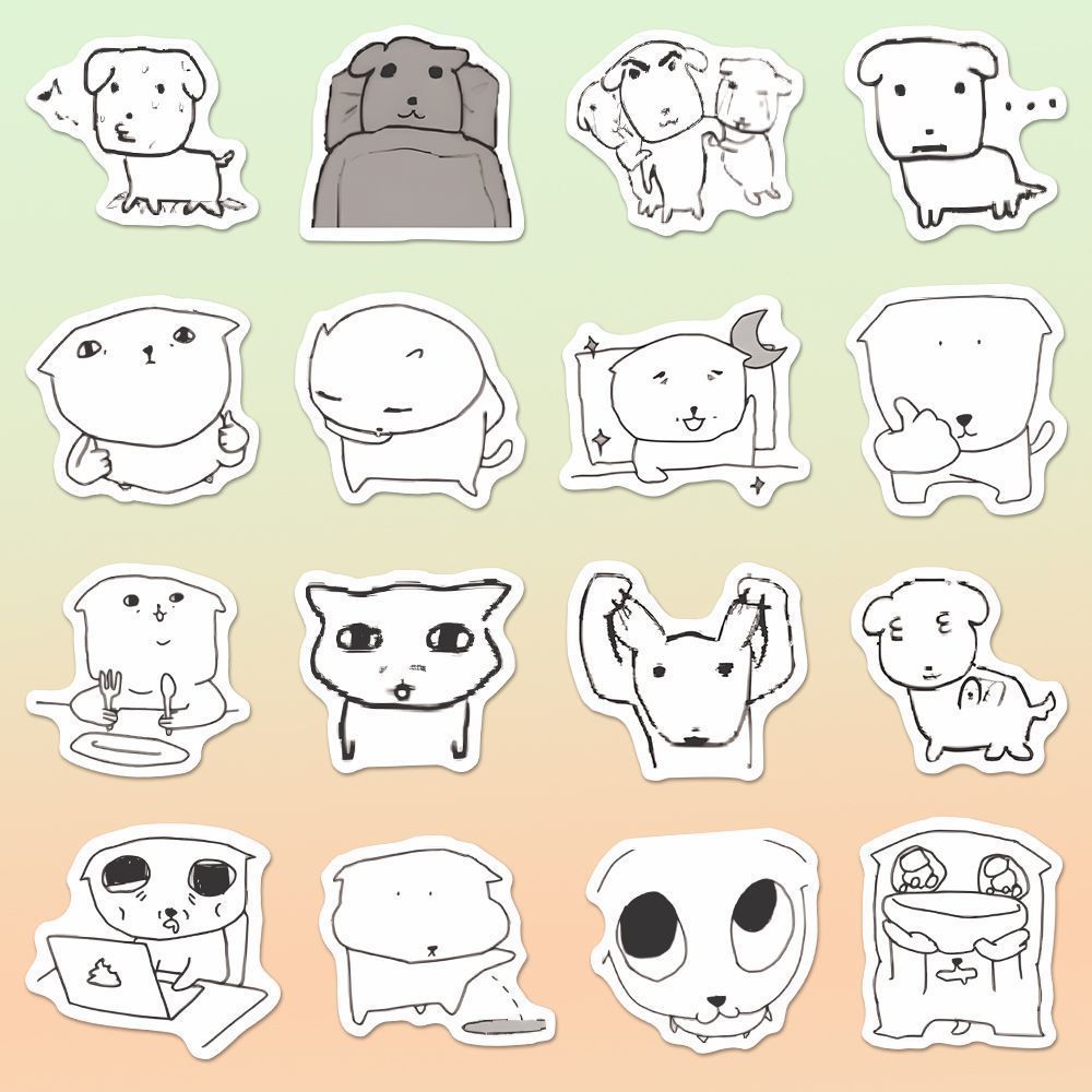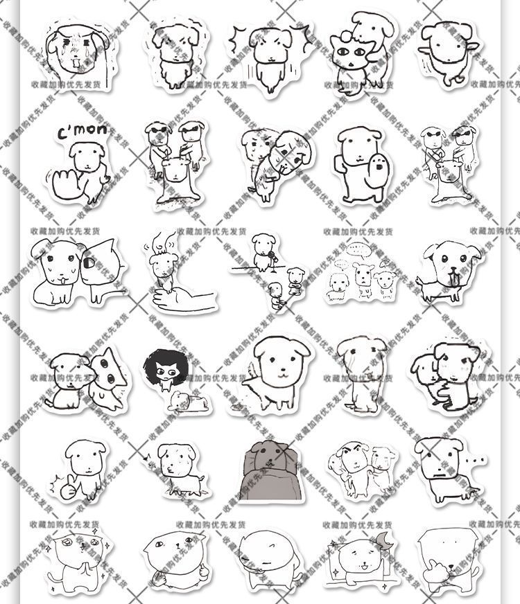 추상적인 선화 강아지 스티커 추상적이고 창의적인 재미있는 이모티콘 DIY 수첩 휴대폰 방수스토어 가기