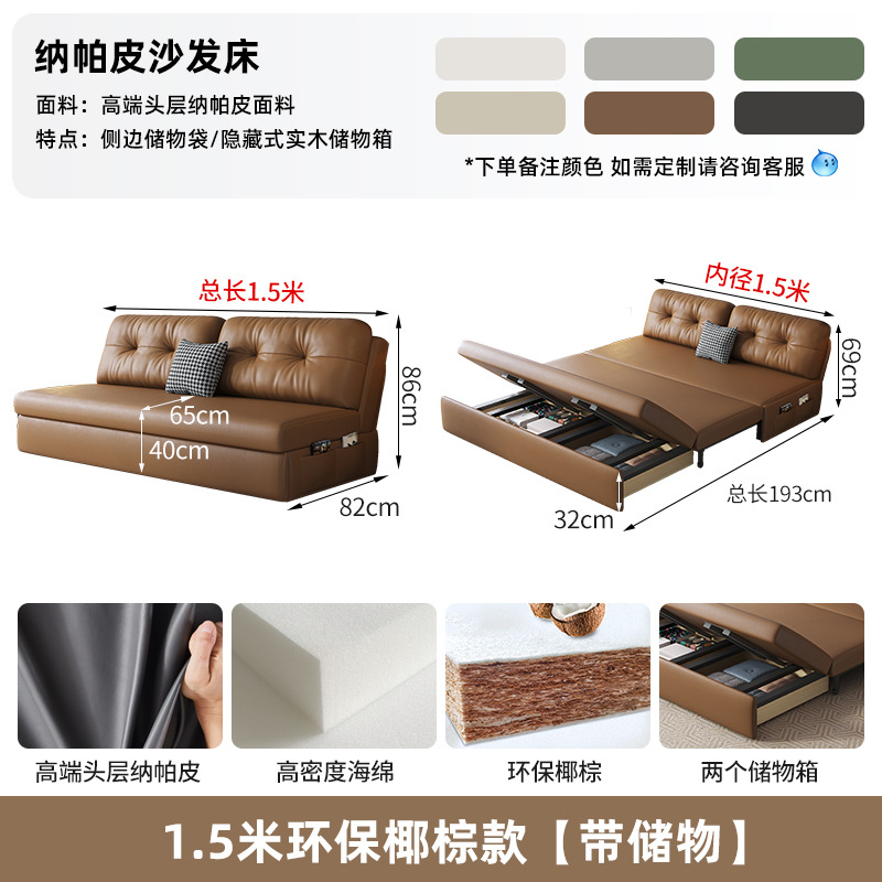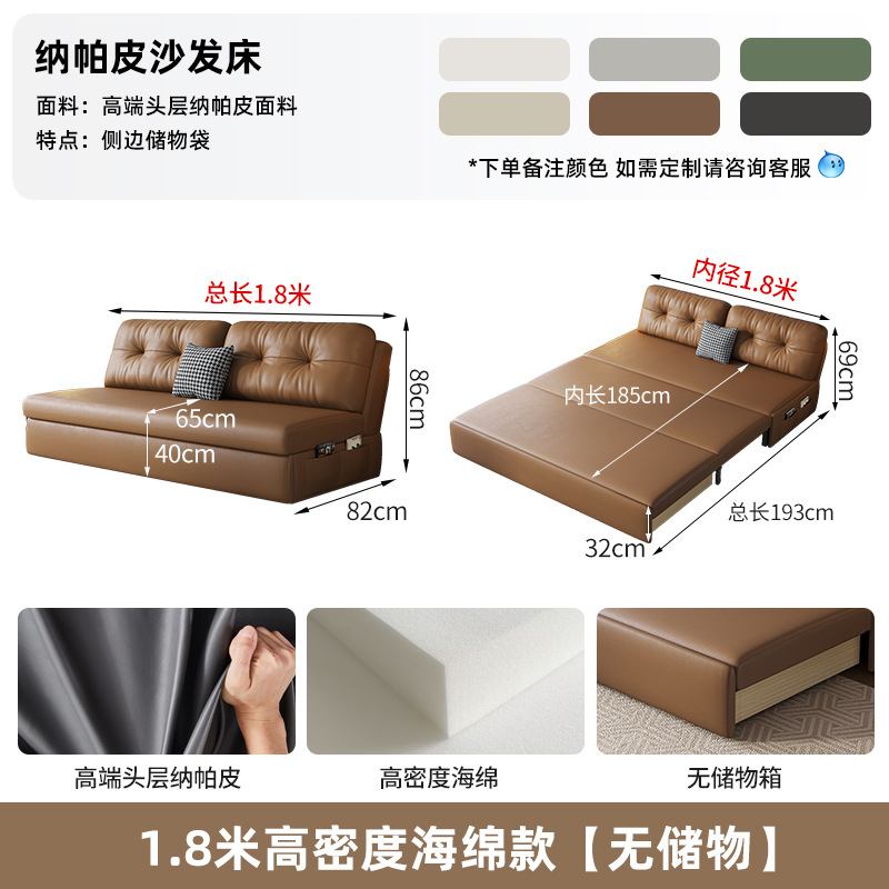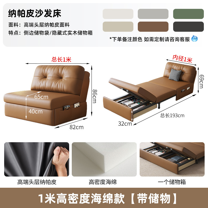 고급 나파 가죽 소파 베드, 이중 목적 Luohan 침대, 접이식 접이식 수납 공간, 소규모 사무실 연구실스토어 가기