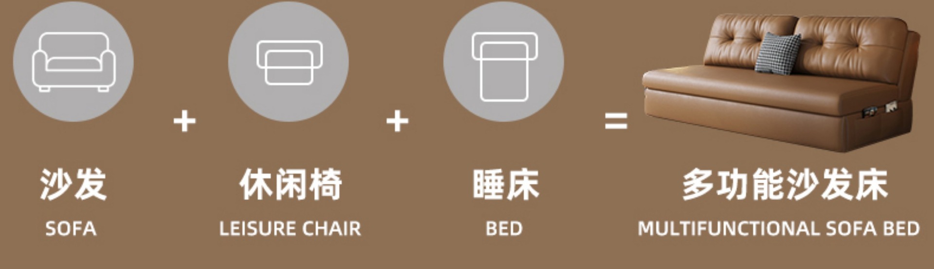 고급 나파 가죽 소파 베드, 이중 목적 Luohan 침대, 접이식 접이식 수납 공간, 소규모 사무실 연구실