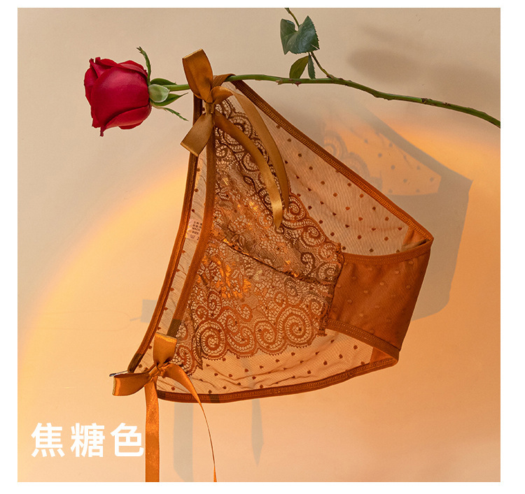 인기있는 폴카 도트 메쉬 보우 소녀 속옷 통기성 코튼 가랑이 섹시한 낮은 허리 순수한 욕망 레이스 속옷 여성을위한