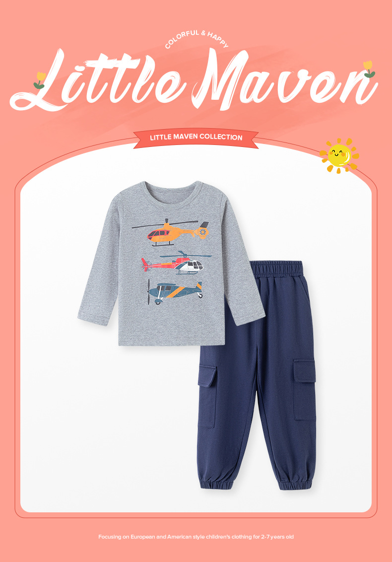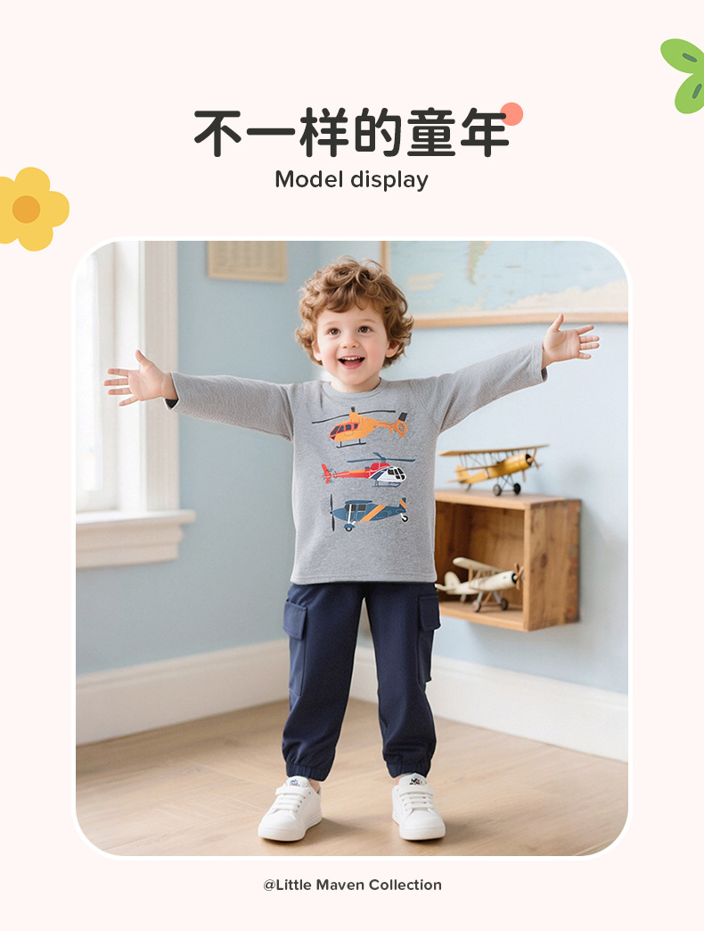 Little maven 가을 유럽과 미국 소년 티셔츠 도매 새로운 긴팔 어린이 탑 만화 오프셋 인쇄 어린이 T