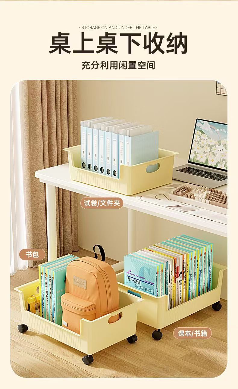 25년 새로운 데스크탑 보관함 가정용 바닥 풀리 U자형 대형 개방형 PP 책상 보관함 보관함