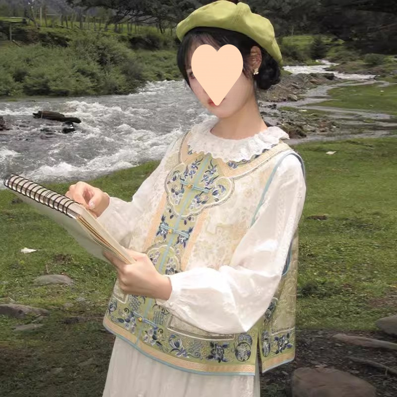 싱글 조끼 2025 봄 여름 새로운 중국 스타일 국가 스타일 중공업 복원 인쇄 라운드 넥 여성용 양복 조끼스토어 가기