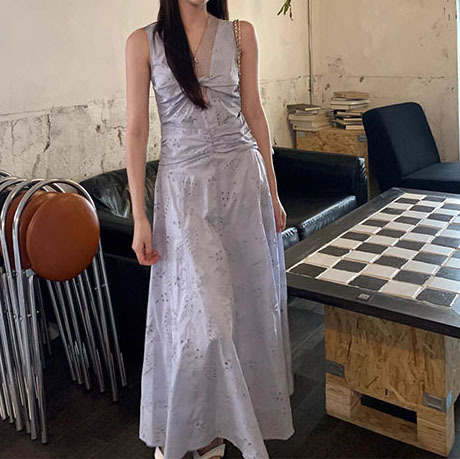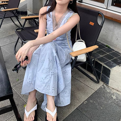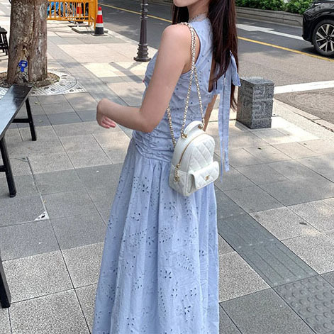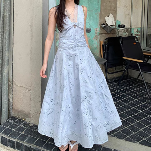 여성을위한 프랑스 순수한 욕망 스타일 레이스 조끼 드레스 여름 새로운 디자인 다목적 주름 A 라인 롱 스커트스토어 가기