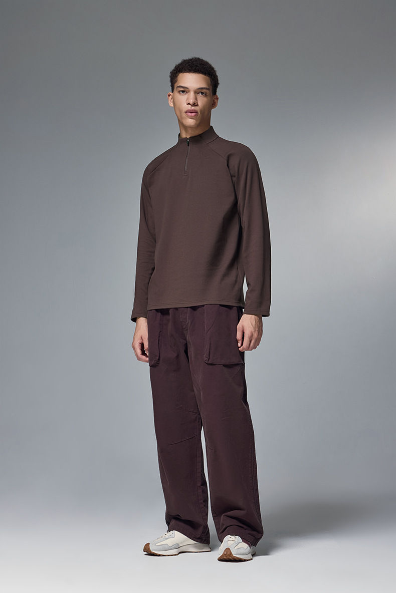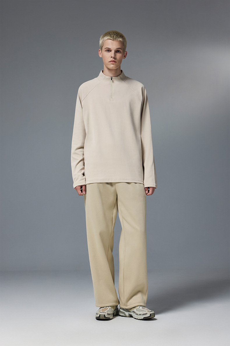 JieZhan 엄선 | 양면 플리스 지퍼 아웃도어 베이스 레이어 긴팔 티셔츠 남성용 가을 겨울 신상품 260g 경량 상의
