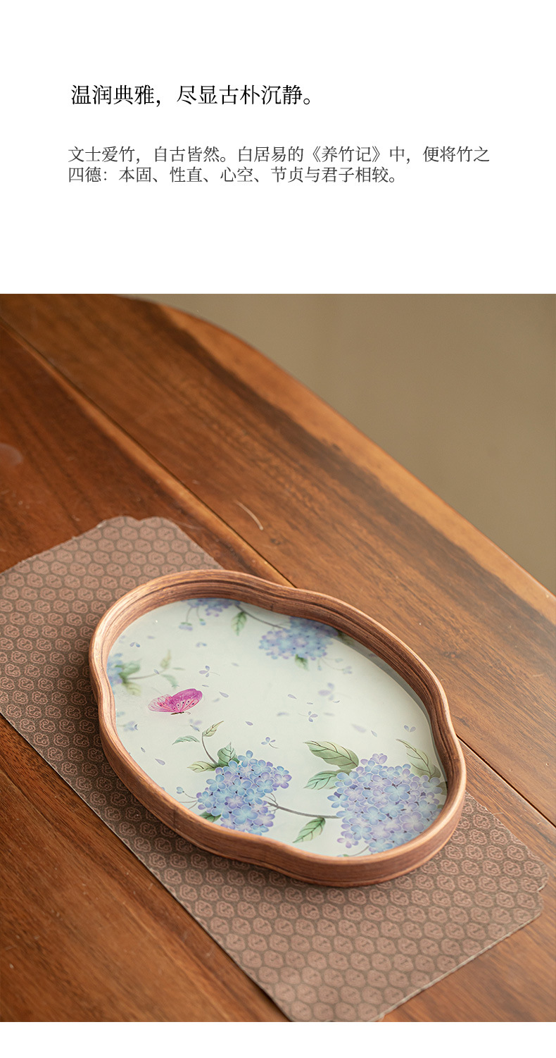 중국 스타일 수국 대나무 유리 차 트레이 건조 버블 트레이 베고니아 티 트레이 주전자 트레이 절묘한 저장 차 세트 액세서리스토어 가기