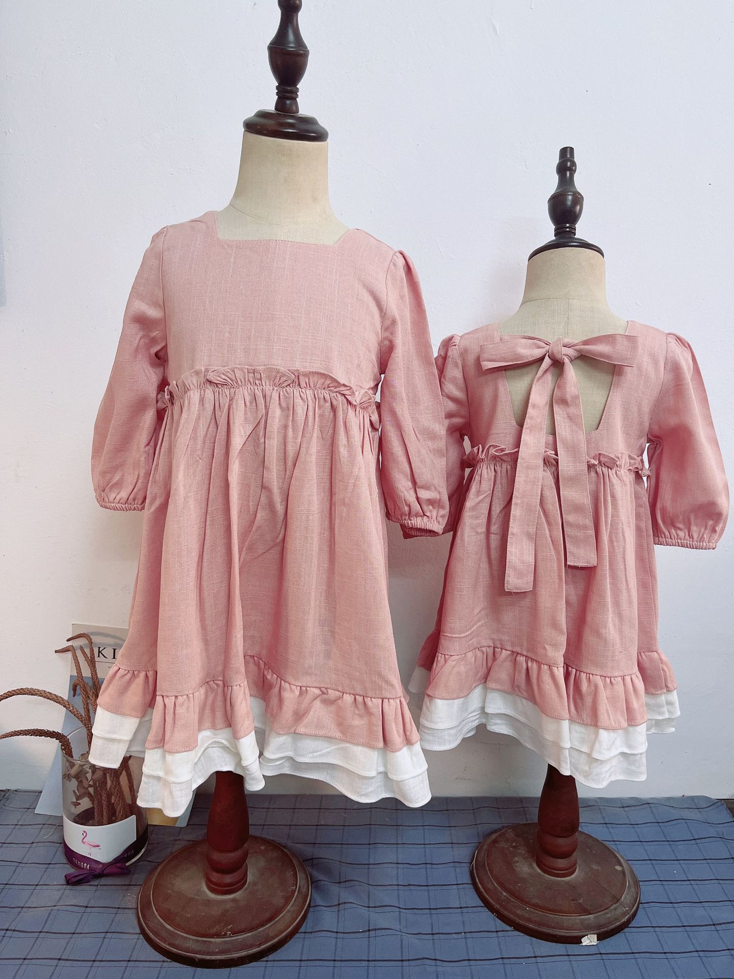 2025 가을, 겨울 소녀와 아동 의류 면화 및 린넨 긴팔 프릴 드레스와 대비 색상 드레스 레이스 업 공주 드레스 ins 크로스 보더