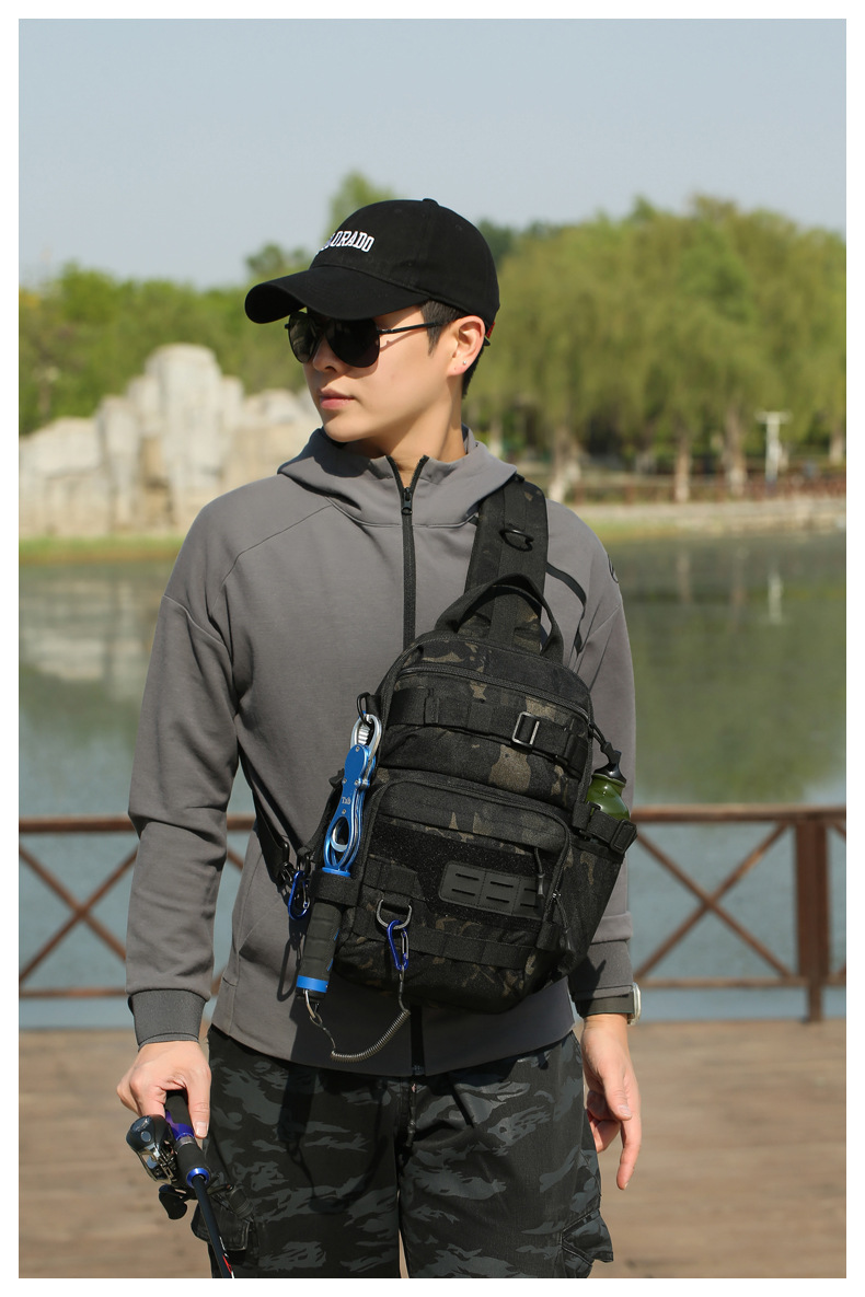 새로운 1000D Cordura Luya 가방 야외 크로스 바디 낚시 가방 전술 스포츠 낚시 장비 가방 배낭 로드 가방 로드 삽입스토어 가기