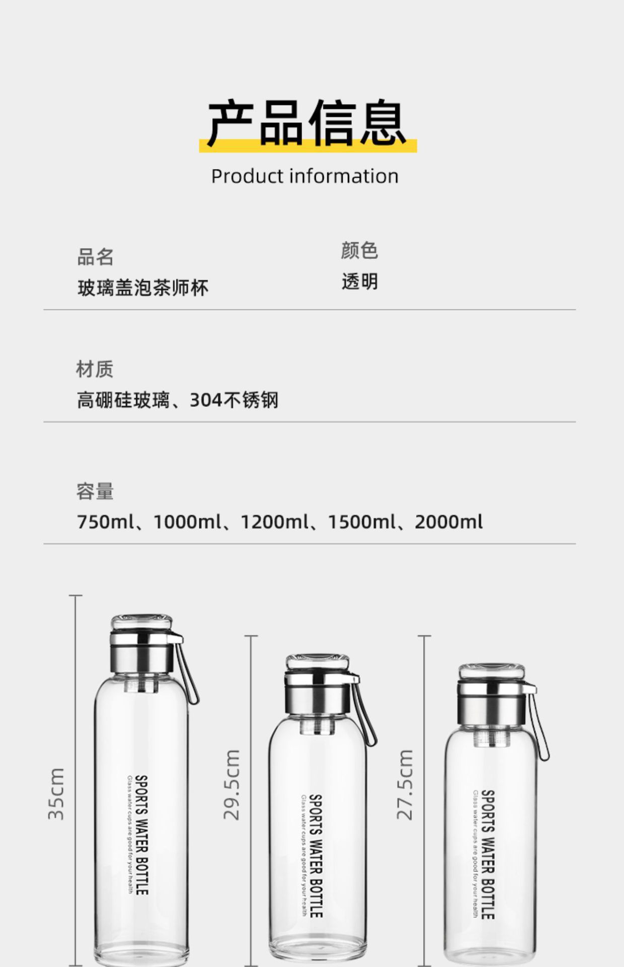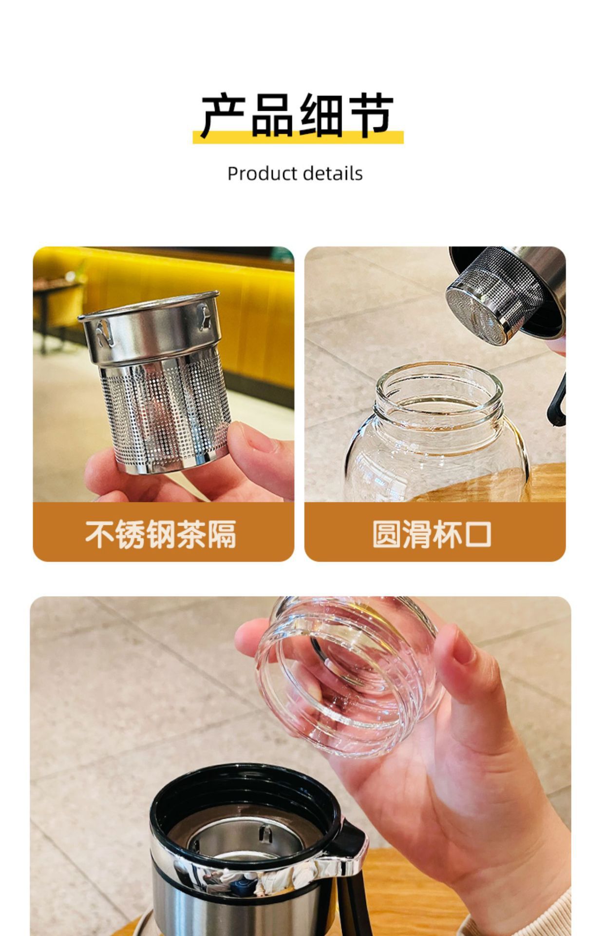 대용량 톤 톤 유리 컵, 고온 방지 및 방폭형 차 물 분리 컵, 차 저장소가 있는 물컵, 두꺼운 물컵, 고급스러운 외관스토어 가기