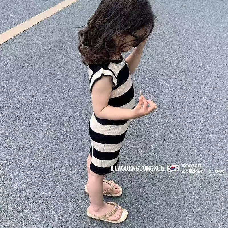 여름 민소매 롱 드레스, 새로운 스타일의 여아 베이비 드레스, 세련된 아이스 실크 얇은 스트라이프 무늬 중소형 아동용 힙커버 드레스스토어 가기