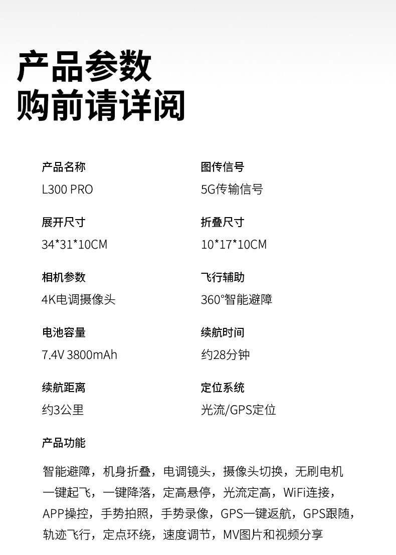 • L300Pro 화면 제어 버전 + 지능형 장애물 회피 듀얼 배터리 백팩 + 컬러 박스