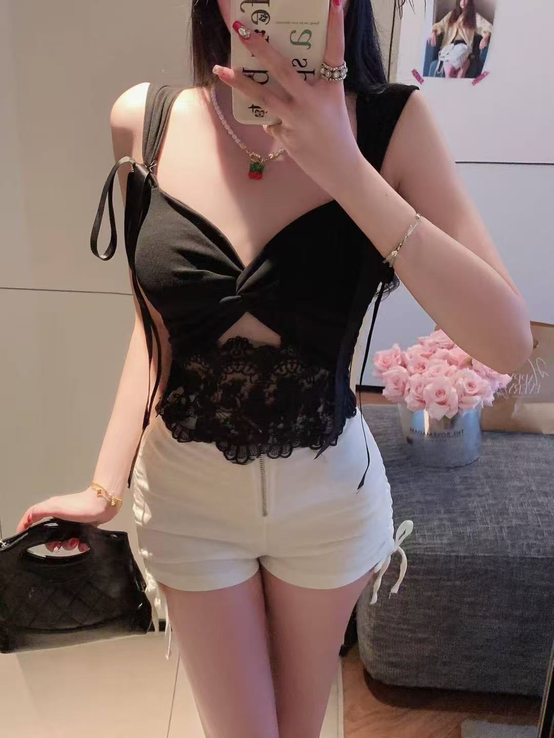 5533 # 레이온 퓨어 러스티 핫걸 스타일 레이스 아름다운 백 서스펜더 이너웨어 가슴 패드 V넥 섹시 조끼 베이스 탑스토어 가기