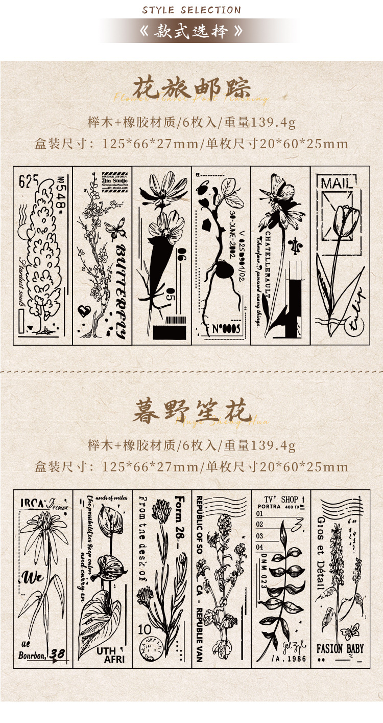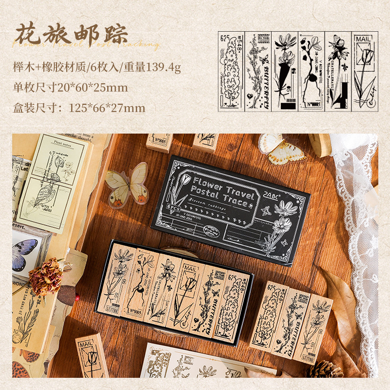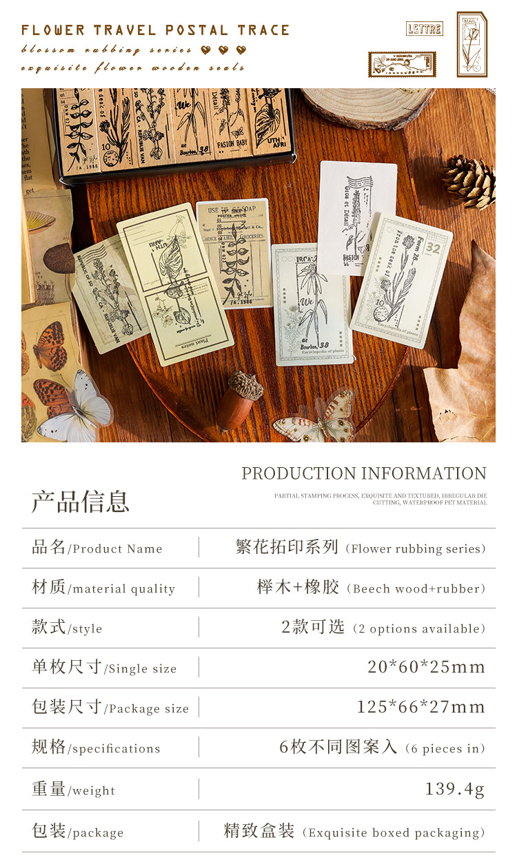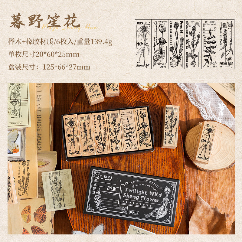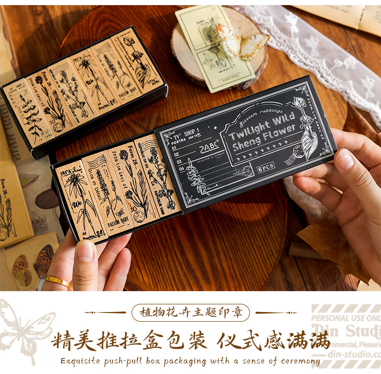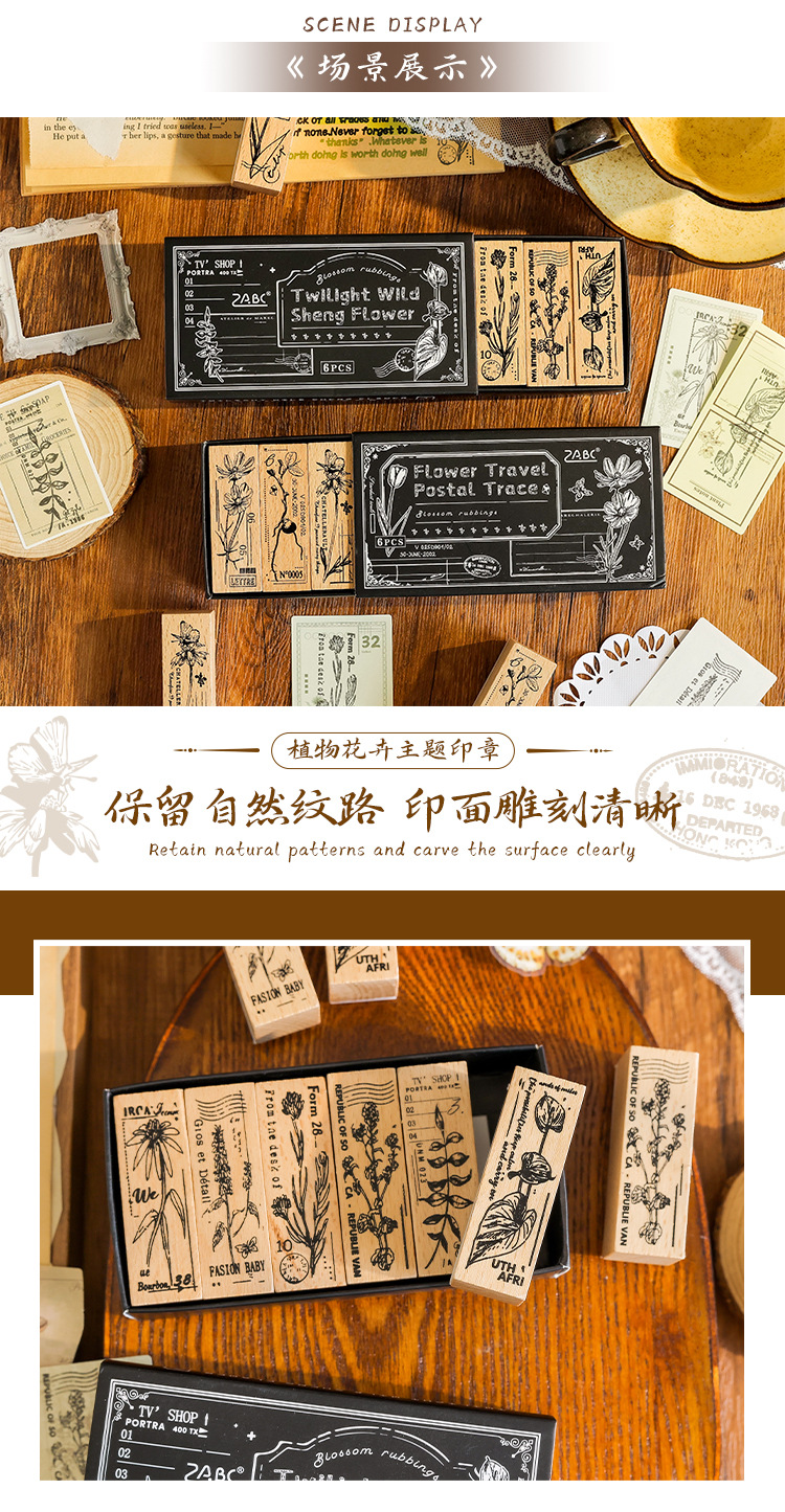 Yuezhen 꽃 인쇄 나무 스탬프 핸드북 스탬프 국경 간 식물 영어 diy 스탬프 나무 핸드북 스탬프스토어 가기