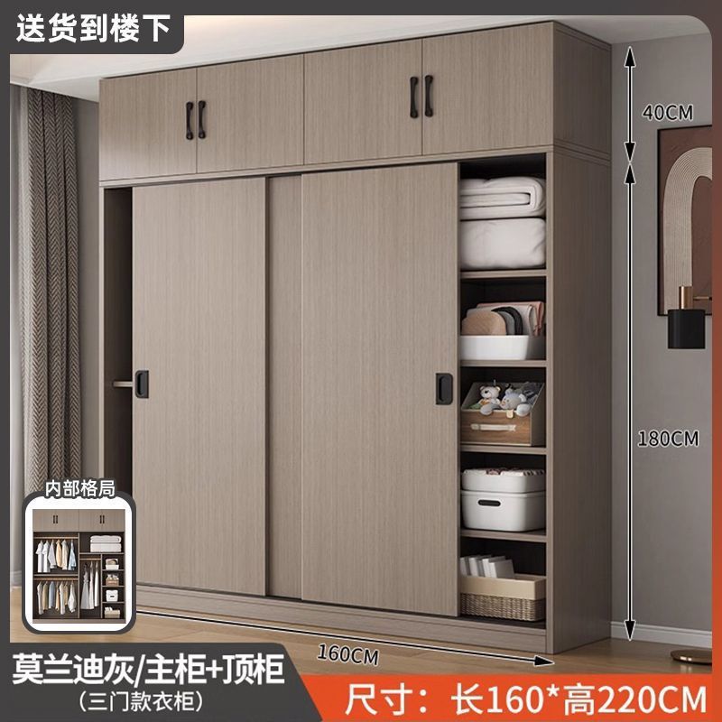 단단한 나무 옷장 침실 홈 캐비닛 현대 슬라이딩 도어 조립 캐비닛 경제적 인 스토리지 캐비닛 옷장 옷장스토어 가기