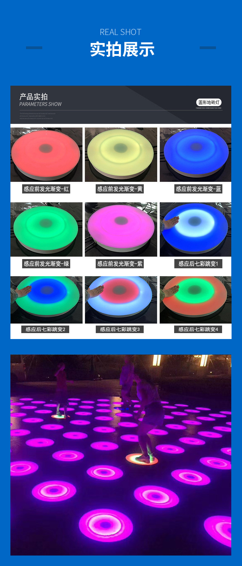 LED 원형 사각형 바닥 타일 조명 야외 방수 중력 센서 바닥 조명 발 조명 다채로운 외부 제어 지하스토어 가기