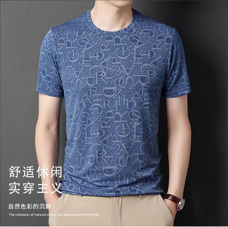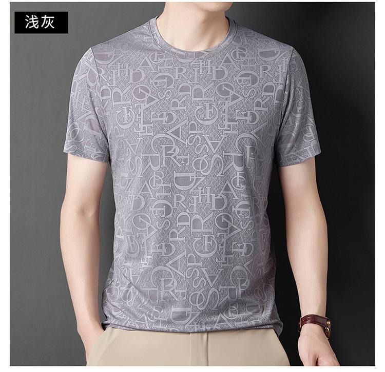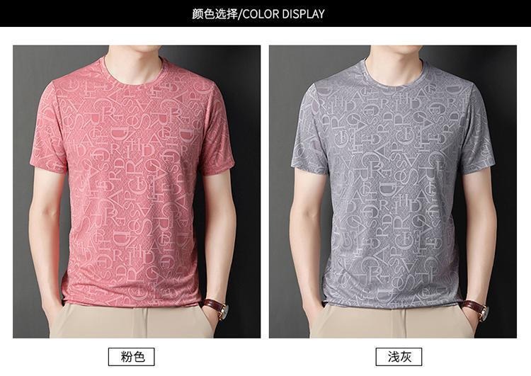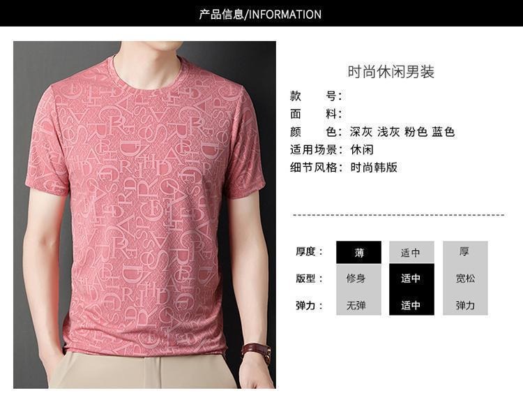남성용 반팔 티셔츠 아이스 실크 속건성 시원하고 가벼운 반팔 프린트 티셔츠 라운드 넥 반팔 탑 티셔츠 베이스 레이어