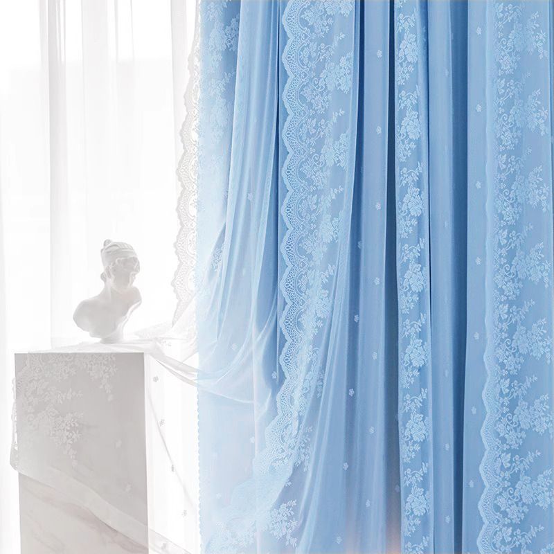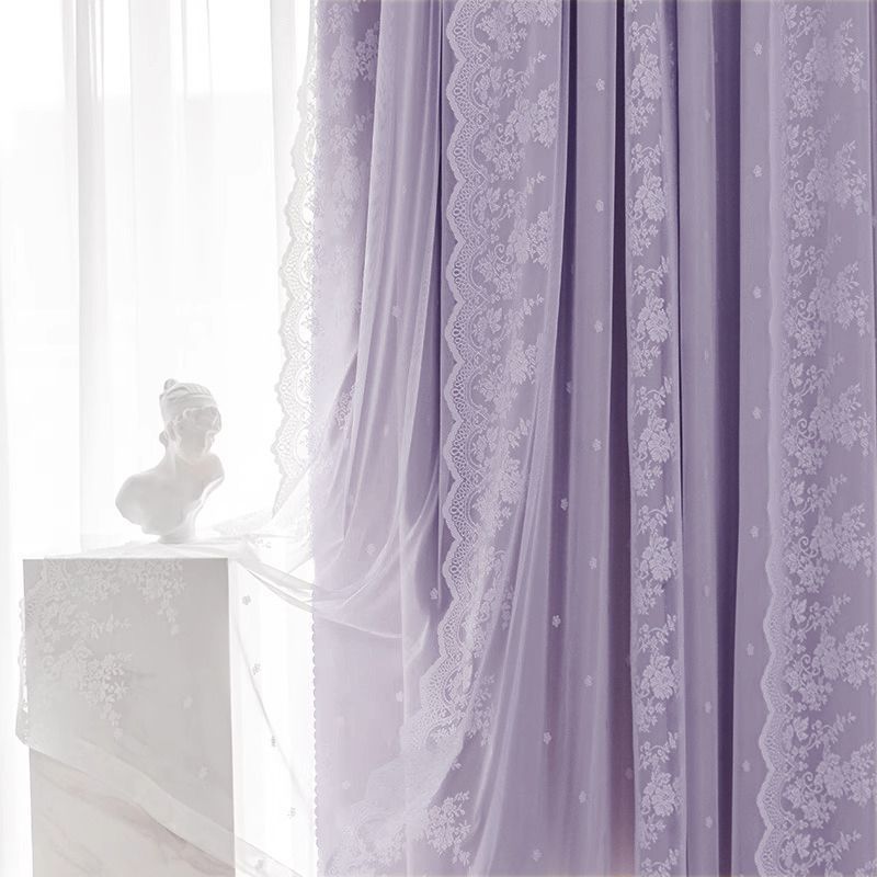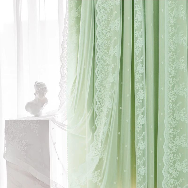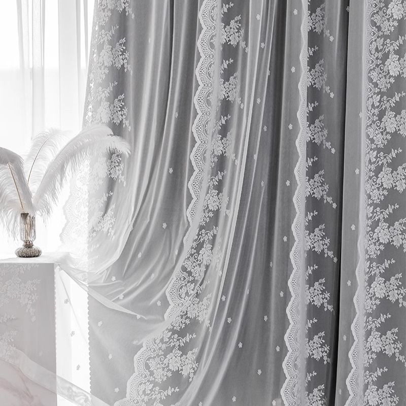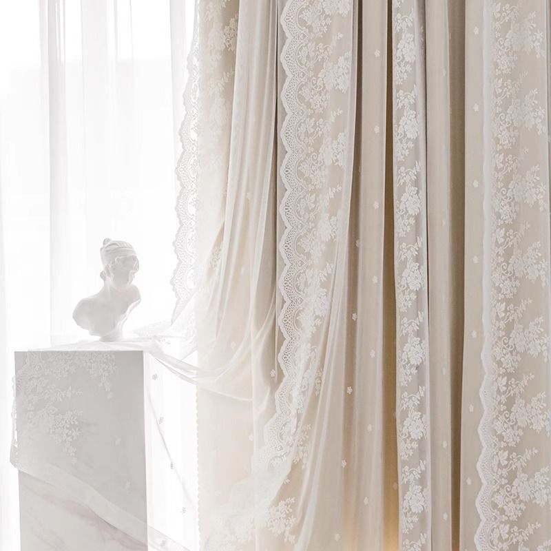 구멍이 없는 커튼에는 침실과 거실을 위한 이중 레이스 차광 칸막이 프렌치 크림 스타일 팩의 텔레스코픽 막대가 포함되어 있습니다.