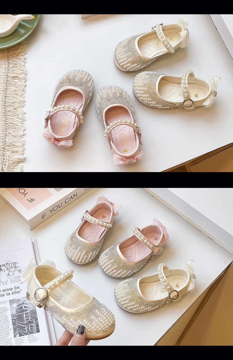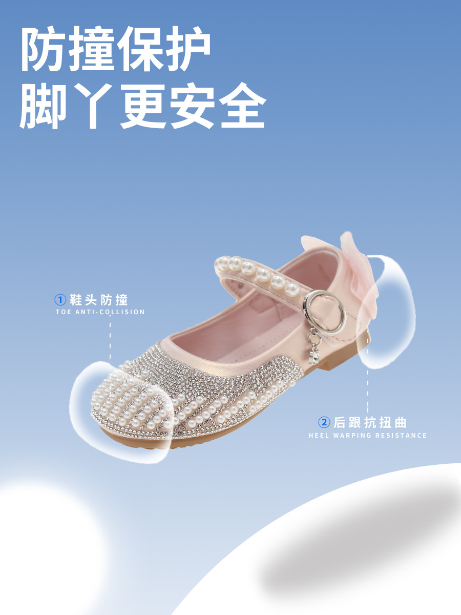어린이 신발 소녀 공주 신발 2025 가을, 겨울 새로운 스타일 부드러운 밑창 가죽 신발 어린 소녀 어린이 성능 신발 크리스탈 신발스토어 가기