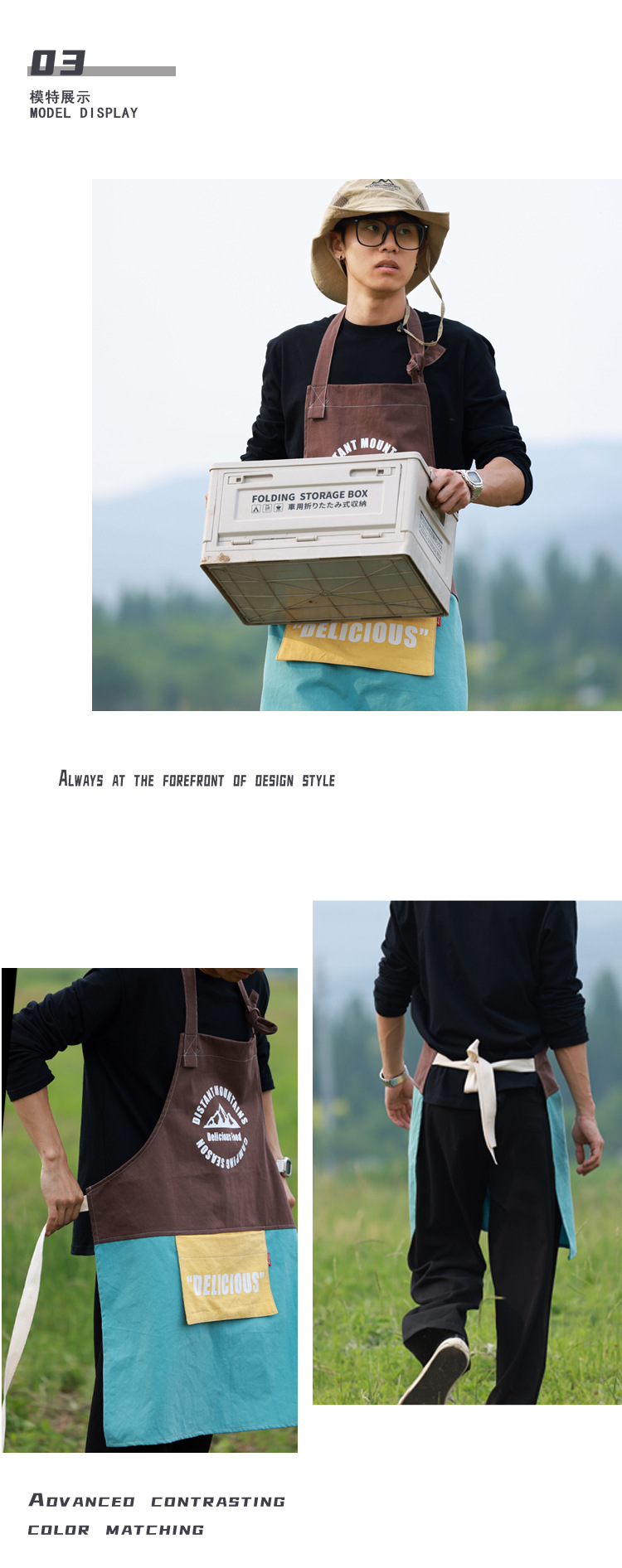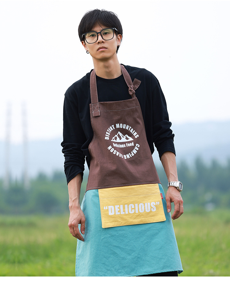 컬러 블록 앞치마 로고 인쇄 케이터링 베이킹 밀크티 숍 바리스타 전용 앞치마 매니큐어 작업복스토어 가기