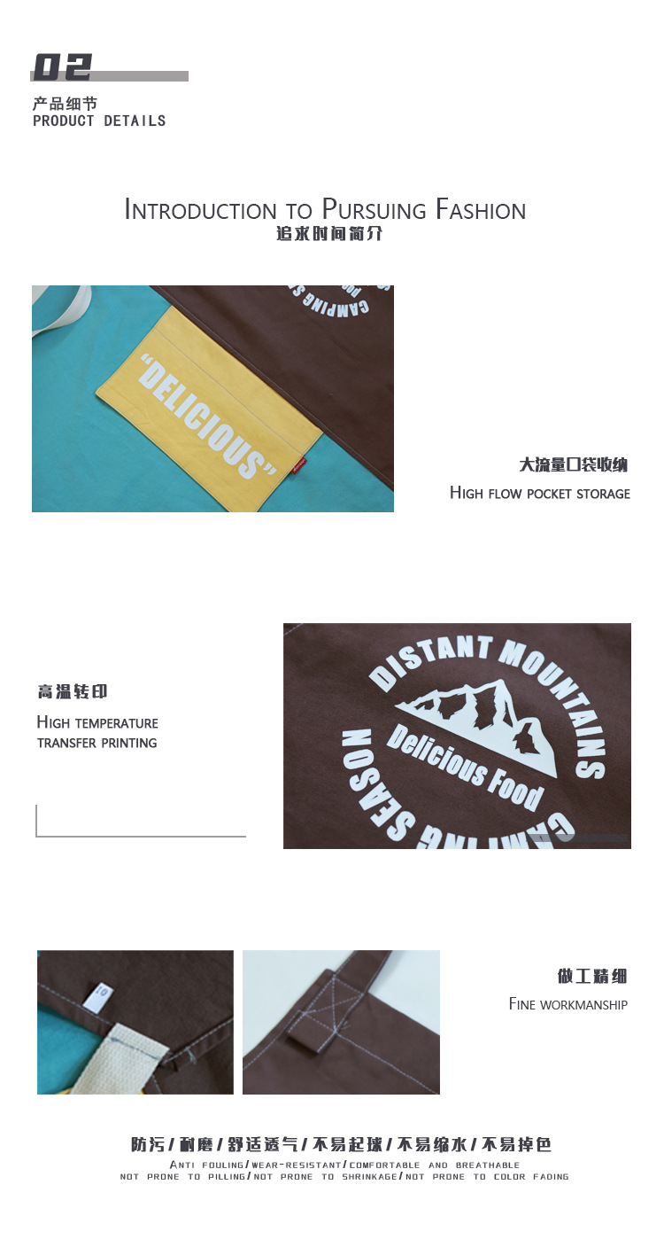 컬러 블록 앞치마 로고 인쇄 케이터링 베이킹 밀크티 숍 바리스타 전용 앞치마 매니큐어 작업복
