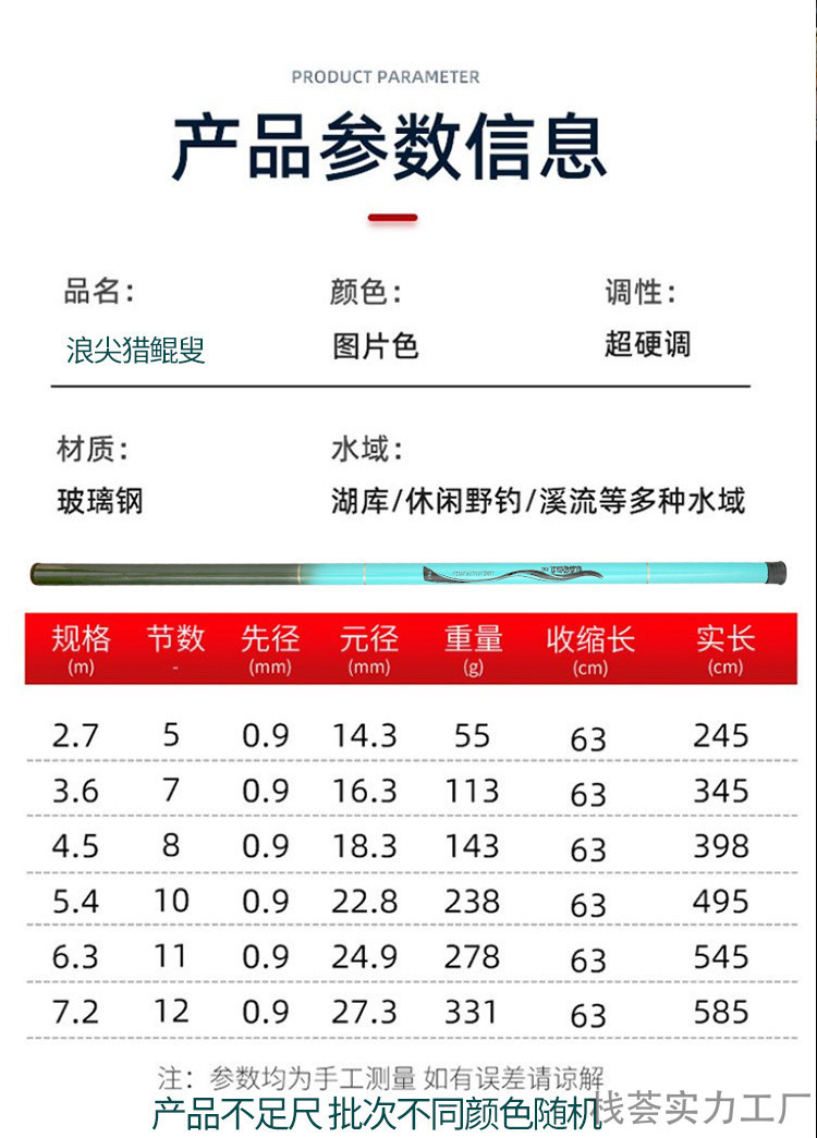 • 단일 2.7m 극 약간(낚싯대 아님) 선물 없음