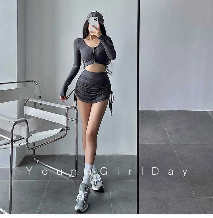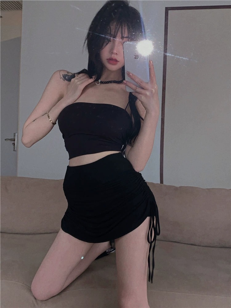하이 웨이스트 플리츠 섹시 퓨어 러스 스커트 여성 힙 커버 a 라인 스커트 드로스트링 여름 미니 스커트 2024 나이트 클럽 스커트