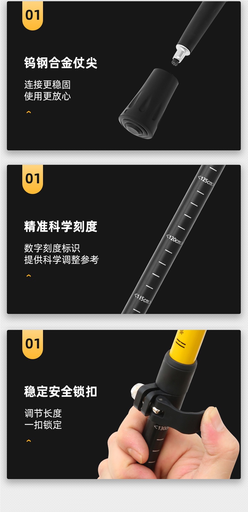 • 다음 2개의 막대/하이킹 및 등반용 막대 2개는 균형을 유지하는 데 더 도움이 됩니다.