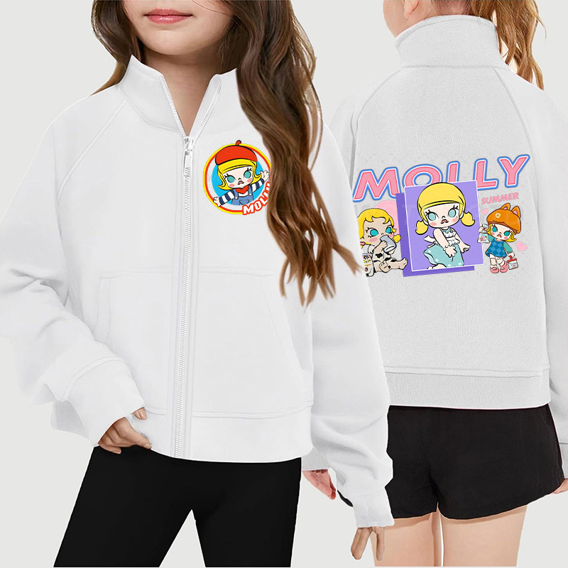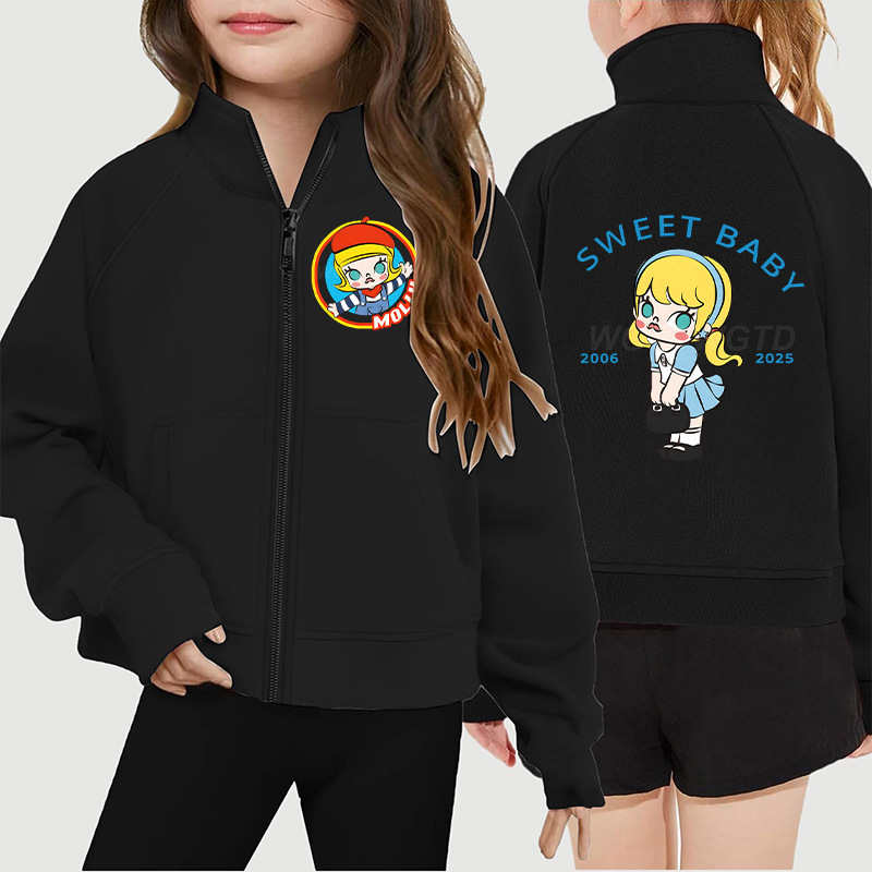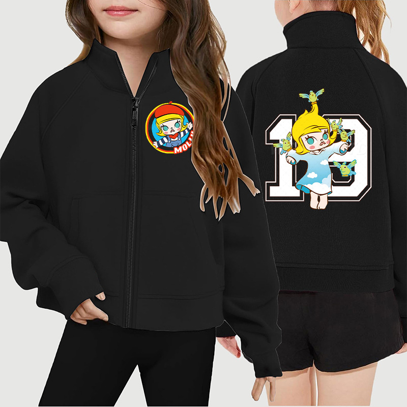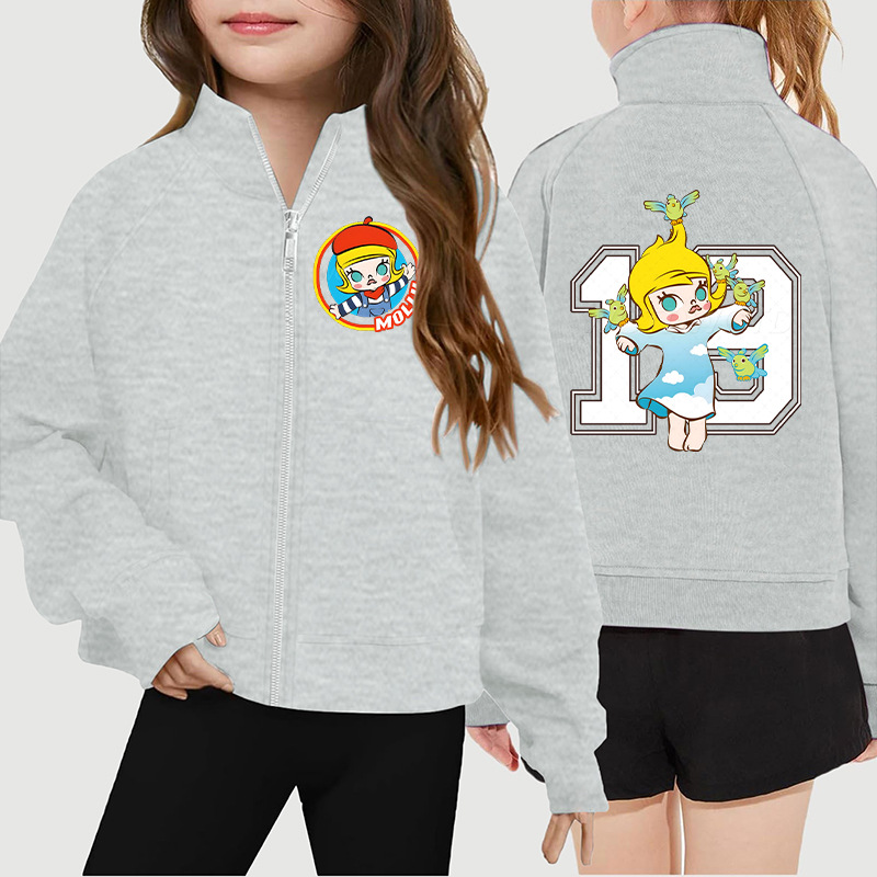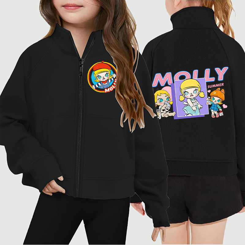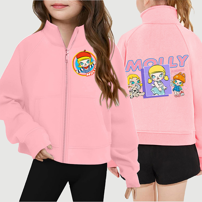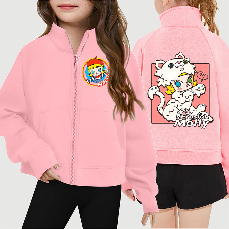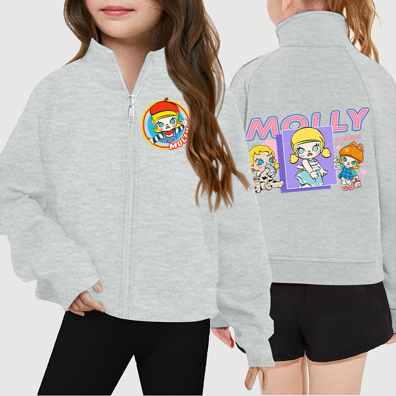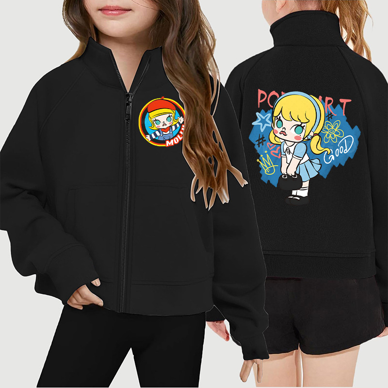 국경 간 몰리 버블 마트 만화 프린트 아동용 솔리드 컬러 지퍼 카디건 재킷 캐주얼 터틀넥 스웨트 셔츠스토어 가기