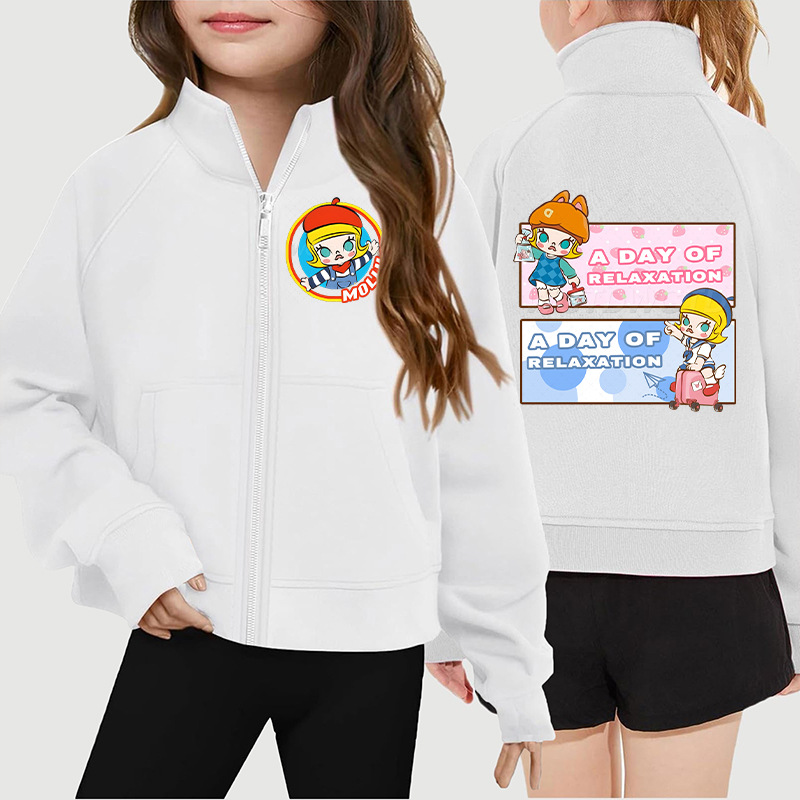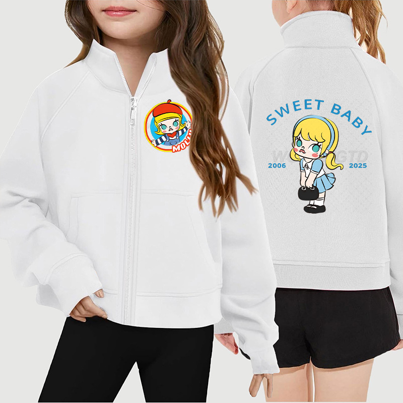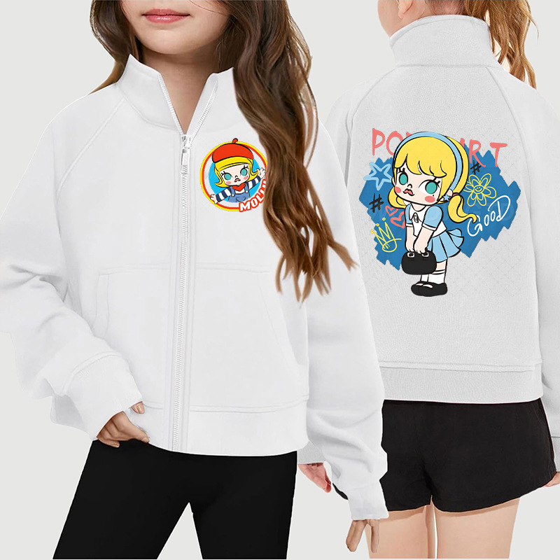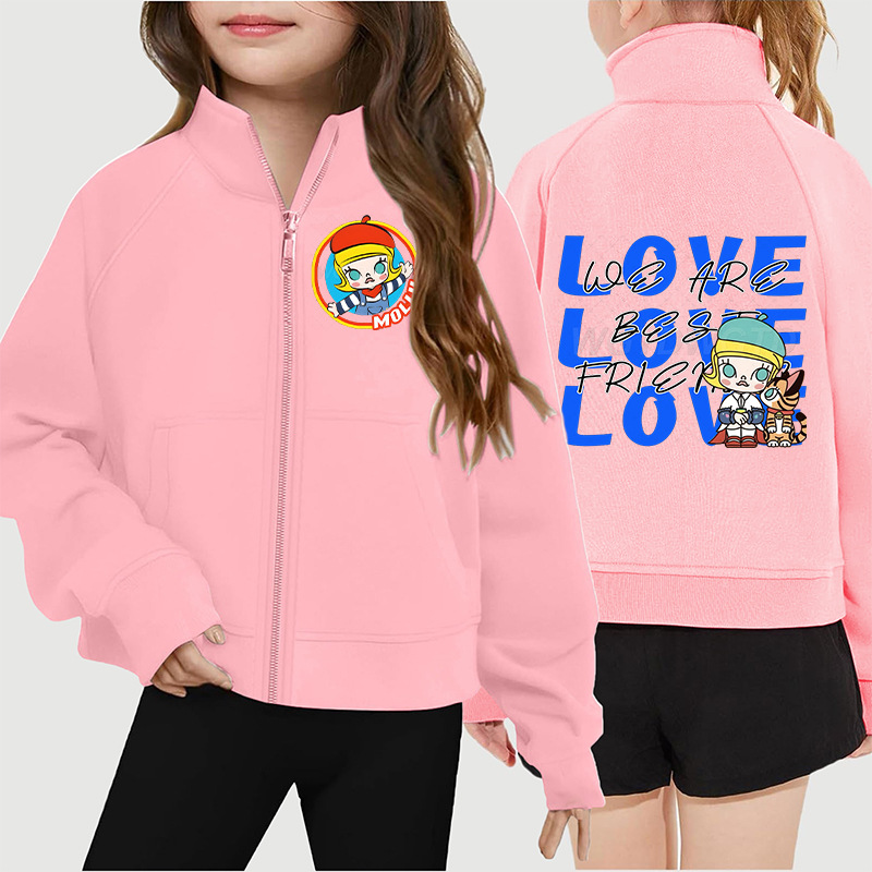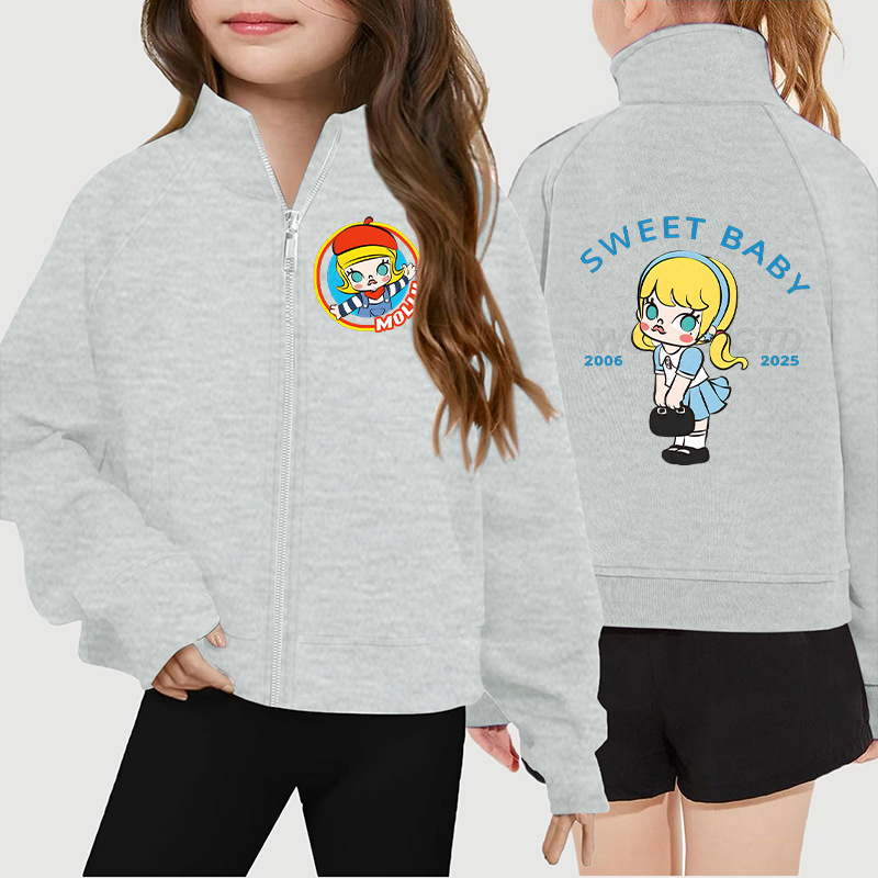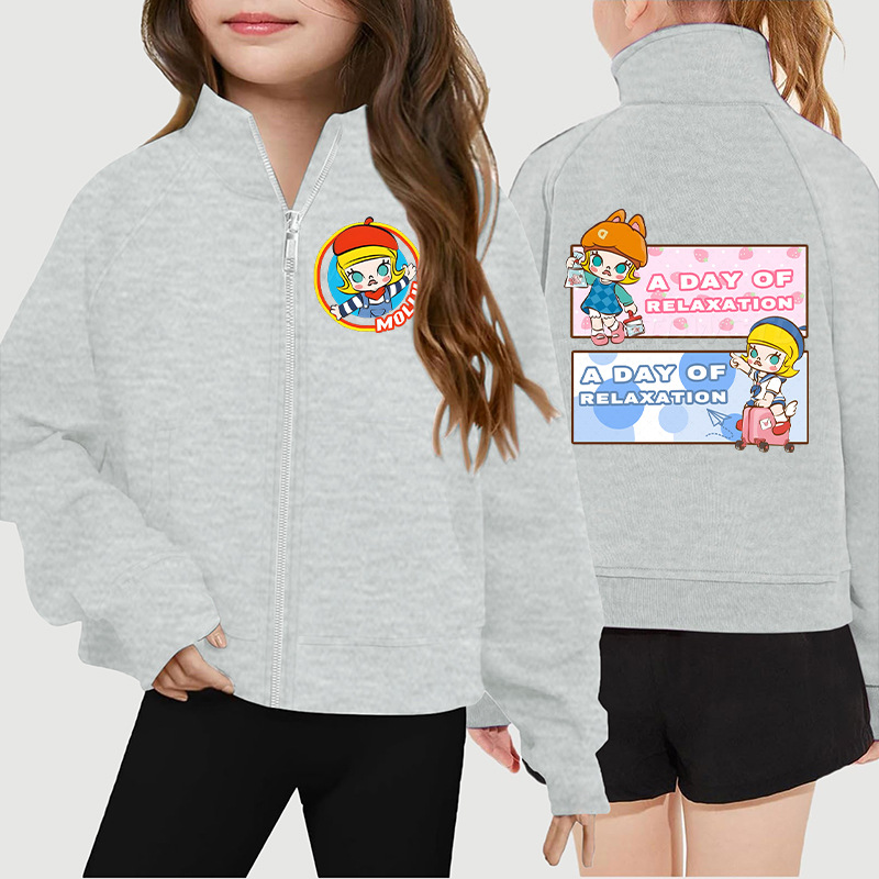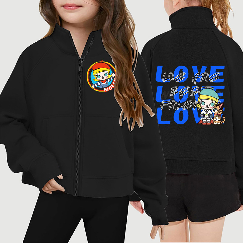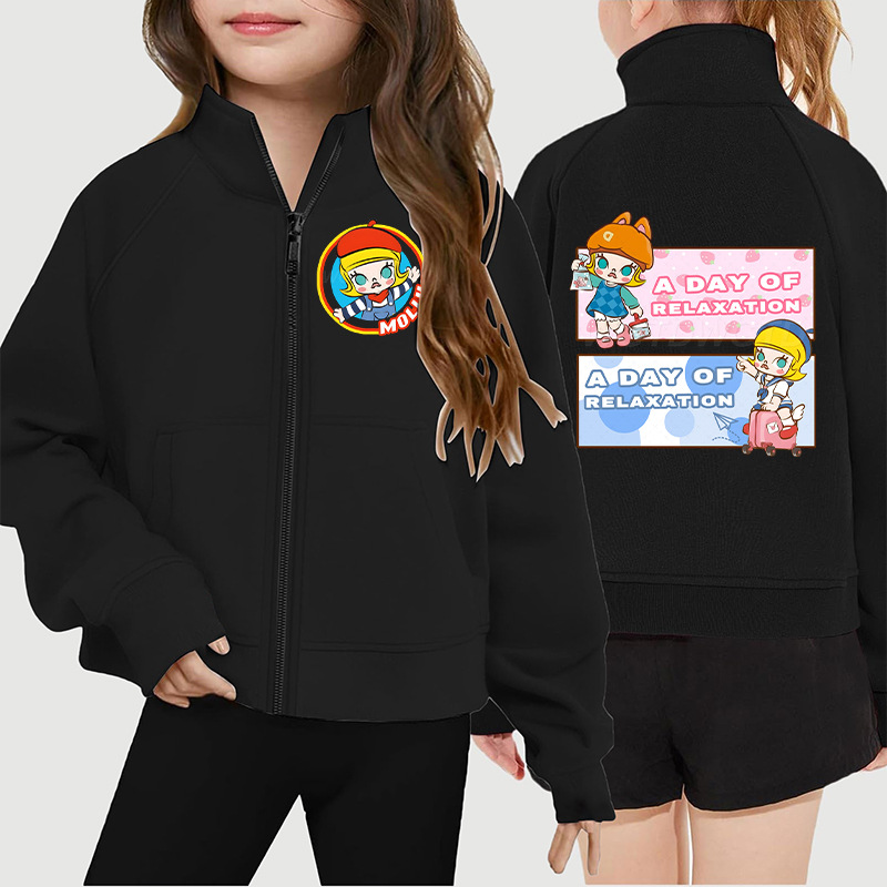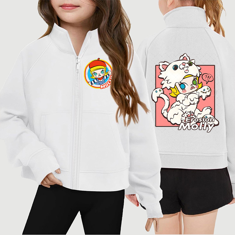 국경 간 몰리 버블 마트 만화 프린트 아동용 솔리드 컬러 지퍼 카디건 재킷 캐주얼 터틀넥 스웨트 셔츠스토어 가기