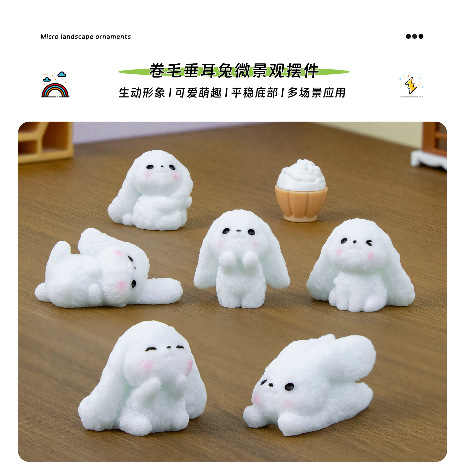 마이크로 풍경 장식품, 귀여운 처진 귀 토끼, 창의적인 자동차 수지 DIY 공예 장식 장식품, 고급 틈새 시장스토어 가기