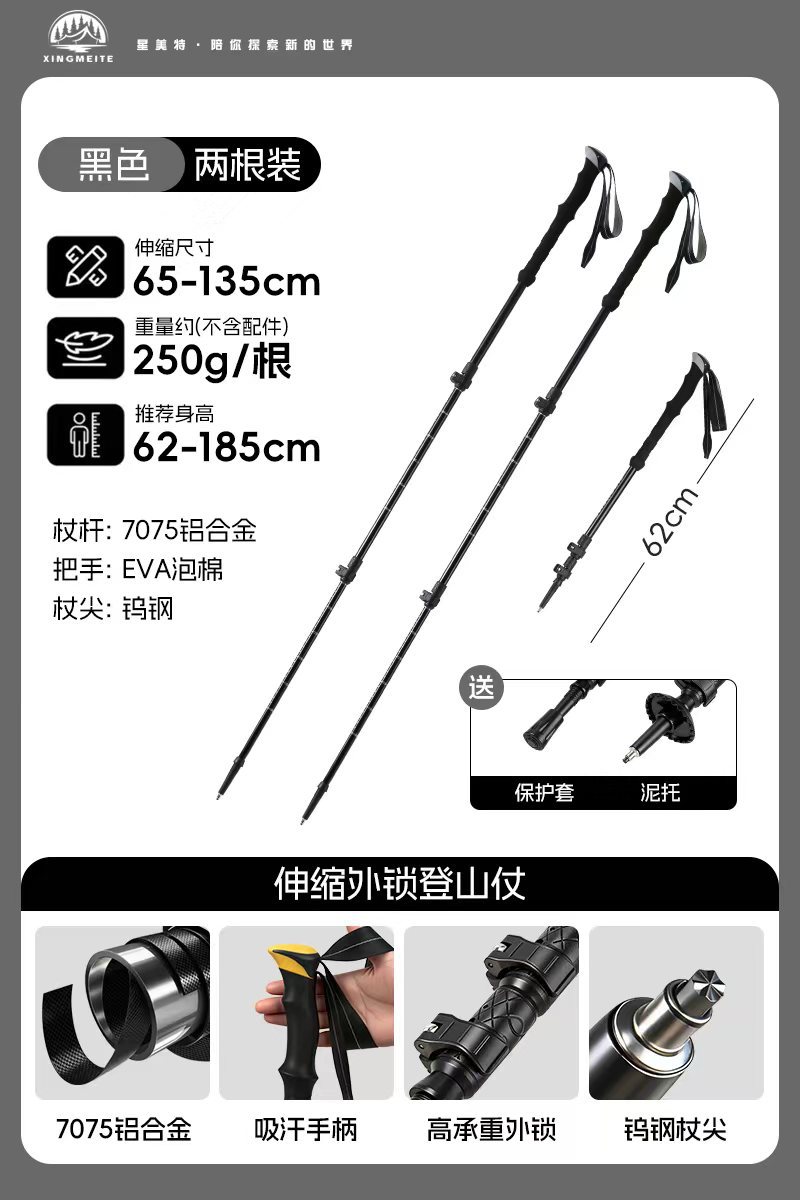 트레킹 스틱, 전문 야외 접이식 등산 스틱, 탄소 초경량 텔레스코픽 하이킹 장비, 미끄럼 방지 스키 스틱