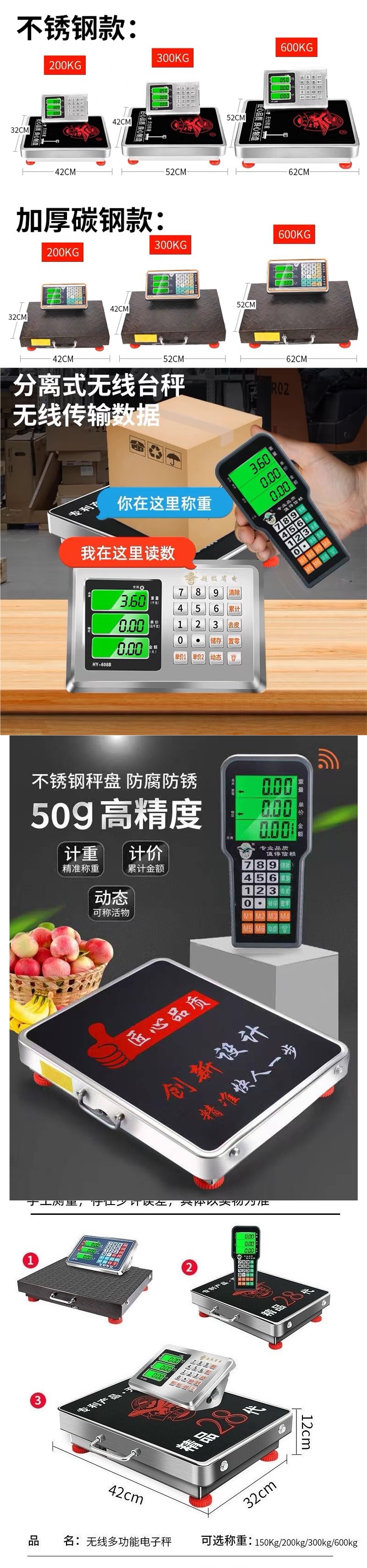 폐기물 수집, 수령 및 판매용 다기능 전자저울, kg 분리형 무선 저울
