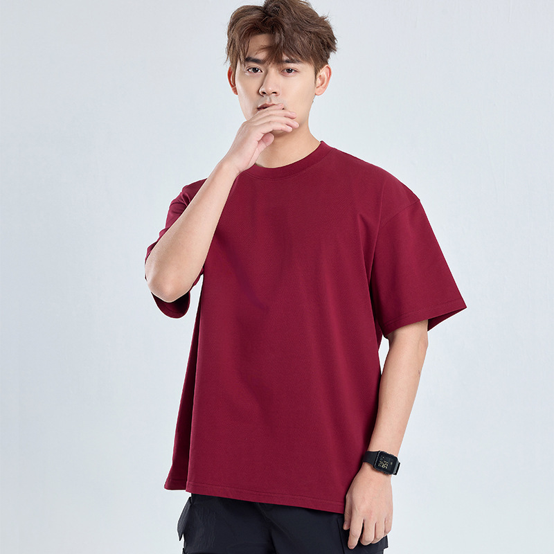 450g 헤비급 반팔 남성 여름 순수 코튼 두꺼운 신장 코튼 스몰 네크라인 아메리칸 반소매 셔츠 티스토어 가기