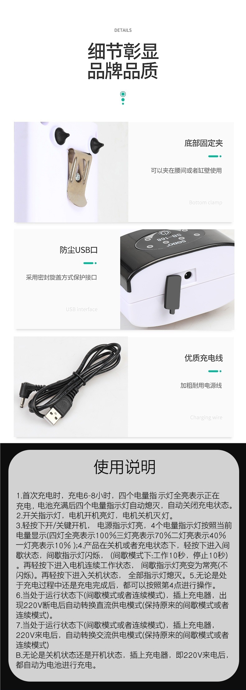 충전식 산소 펌프 산소 펌프 낚시 이중 목적 산소 발생기 야외 소형 USB 리튬 배터리 산소 공급
