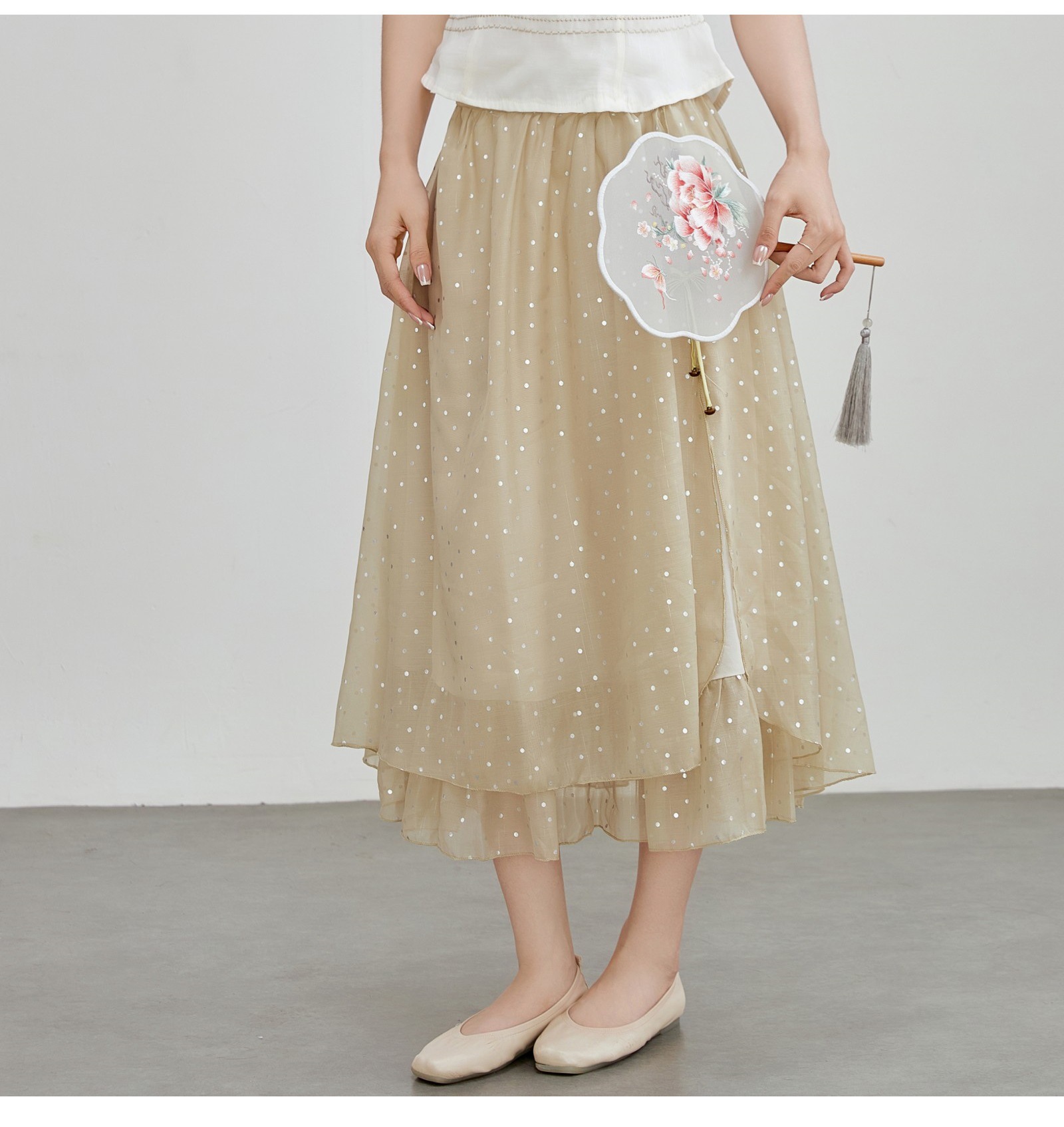 여성을위한 새로운 중국 스타일 자수 정장 2025 여름 새로운 반팔 셔츠 탑 메쉬 스커트 투피스 세트